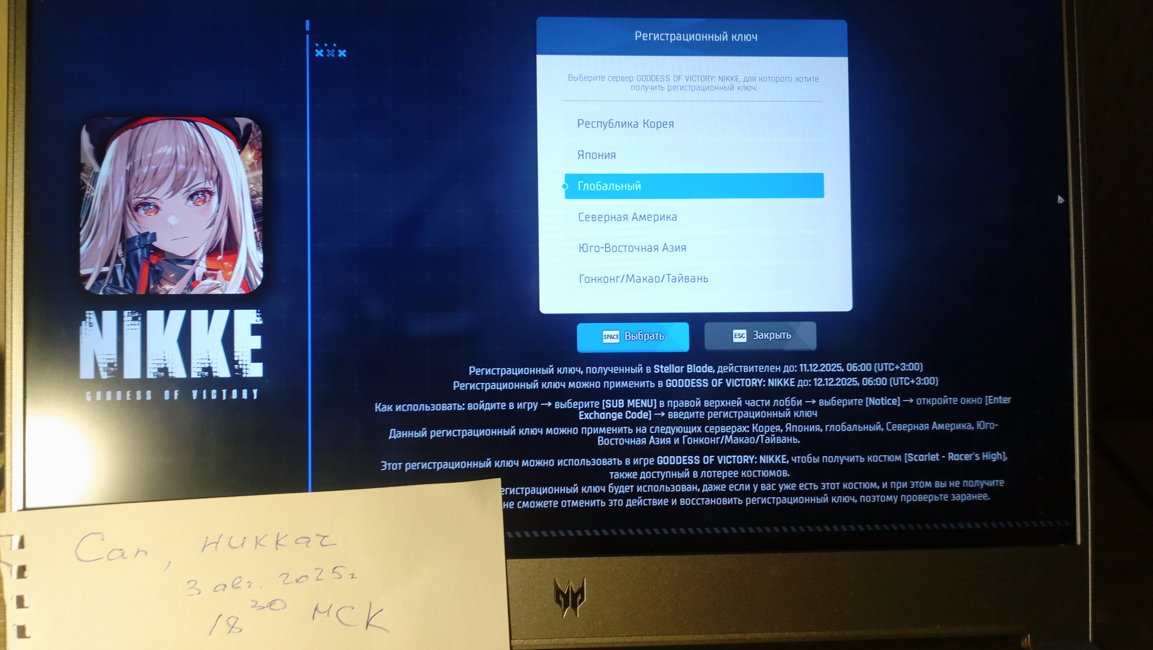Отдаю в хорошие руки безвозмездно без смс и регистрации ключ от костюма Scarlet - Racer's High, который мне достался прицепом к полной версии Стеллар Блейд. Барыжить им не хочу, поэтому перекупов прошу идти лесом. Предлагаю сконнектится в условном яндекс.телемосте (мне мама ютуб/дискорд замедлила). С вас демонстрация отсутствия этого костюма на Скарлет в игре. Скажете для какого сервера вам нужен ключ - я выберу, там же покажу/пришлю текстом. Активируете сразу, если нет, то вышлю за вами черную машину с надписью "ХЛЕБ" и отрядом кукл из Розен Мейден, десу.
