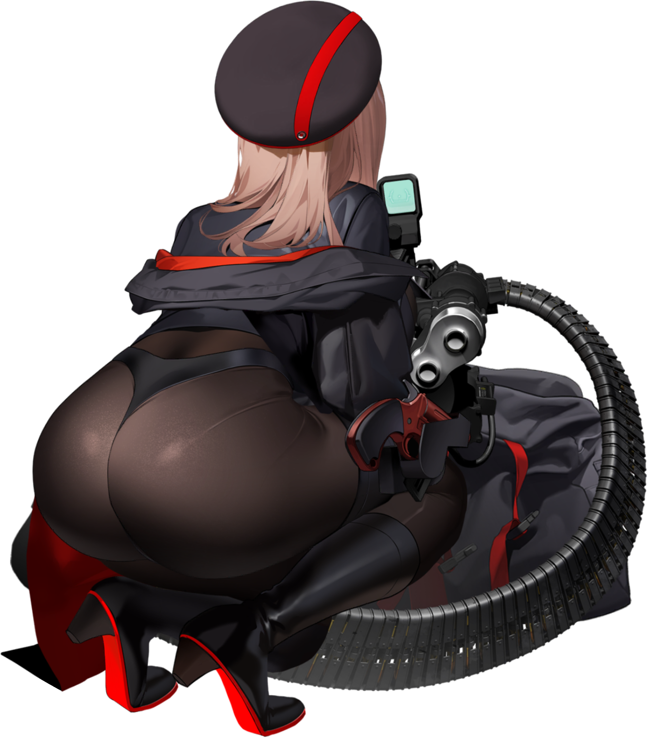 И снова: спрятанная задница в позе для стрельбы, другое лицо (меньше «атрибутики старшей сестры», как вы это называли раньше) и чрезмерно повернутая голова.