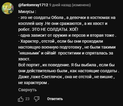 >>5379551 >>5379561 Пиздец все еще Алису обсуждают? Уже недели 2 вроде прошло с анонса. Мне не понять негодование на этот счет.. Алиску и Клишку няшить и выкручивать с кайфом нормальные люди будут.