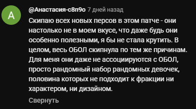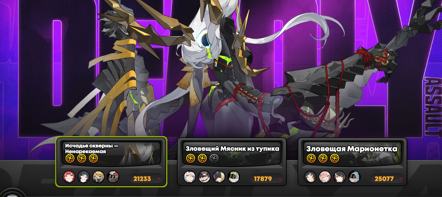 Писюань ВСЁ, убрали босса созданного под нее и она внезапно просела в 2 раза по очкам, какое же дерьмище, а не режим и все связанное с ним, разраб на хую вертел каждого игрока, который крутит хоть какого-то перса, пуская пыль в глаза сначала баффами в обороне и штурме под этого перса, чтобы все покрутили, а потом убирает баффы и чарик внезапно начинает сосать хуй, а все не понимают КАК ЖЕ ТАК ВЕДЬ ОНА СИЛЬНАЯ, жрем говно каждый патч, готовимся в некст патче заглатывать в обе щеки от Обол Сквада и баффов под них, удачи! Но я этот кал пожалуй дропну.