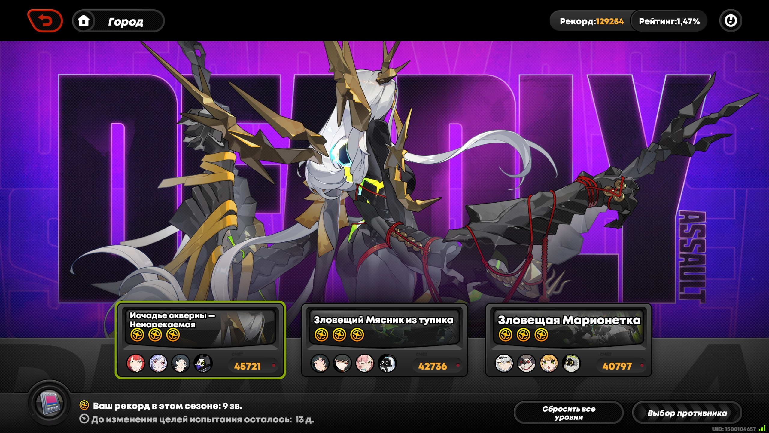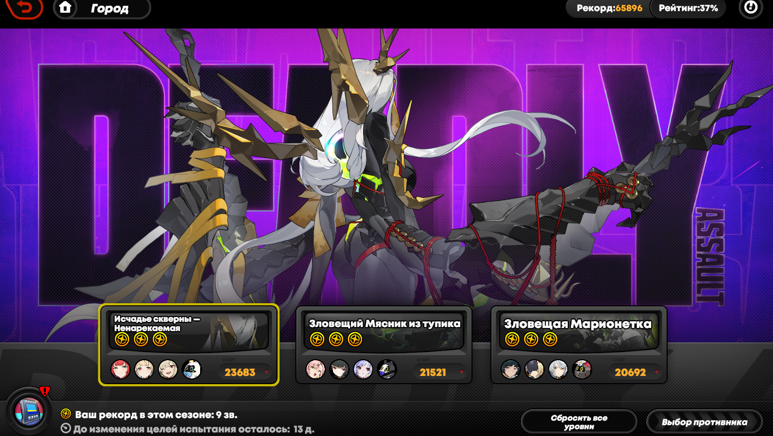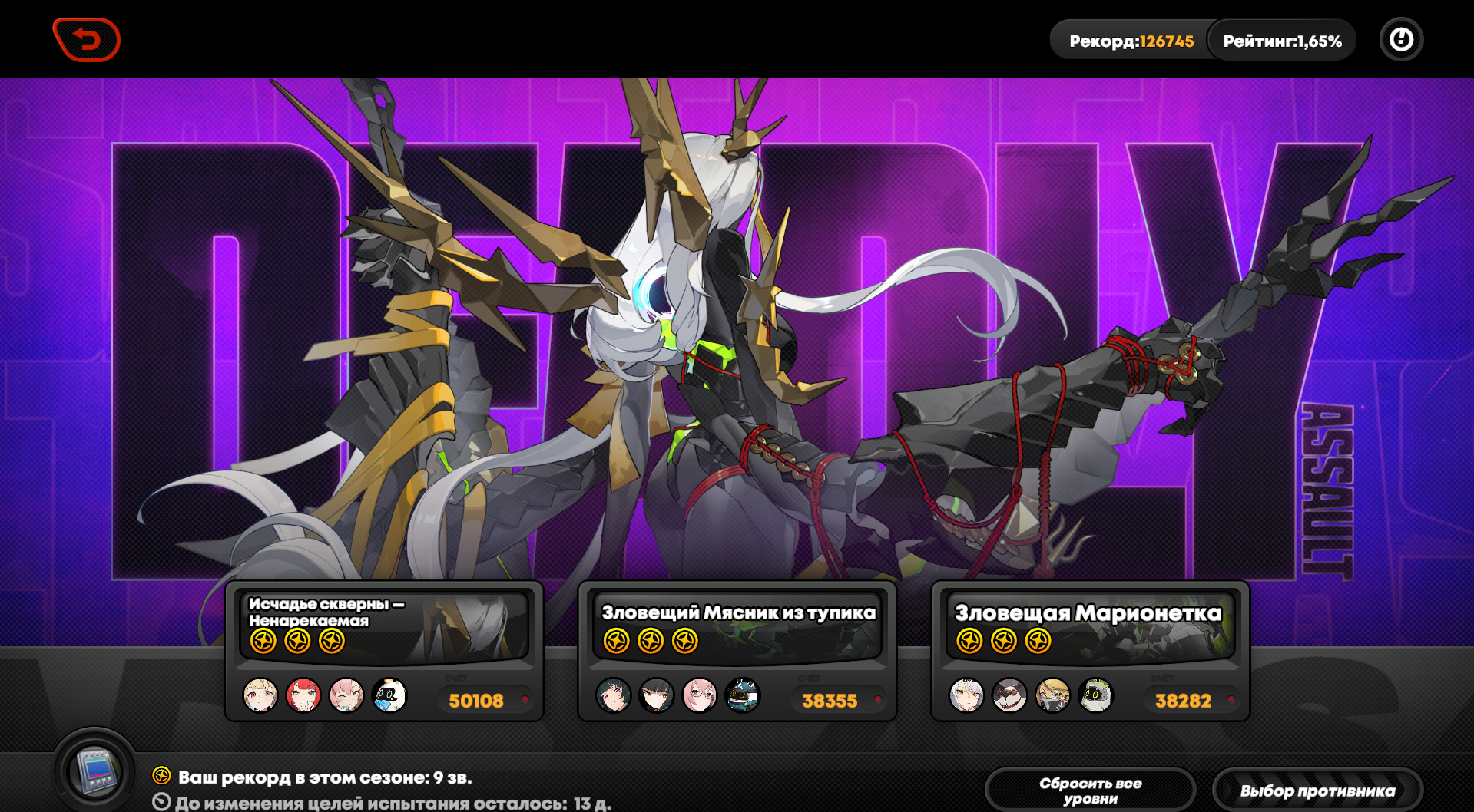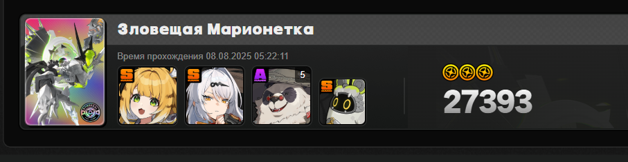 Осталось только Марионеток пройти, и всё, можно будет успокоиться на некоторое время. Думаю, буду пытаться пройти балерин с Исюань, пандой которая у меня блять не прокачана, и с пульхрой. Буду надеяться, что ~25 000 очков смогу набить.