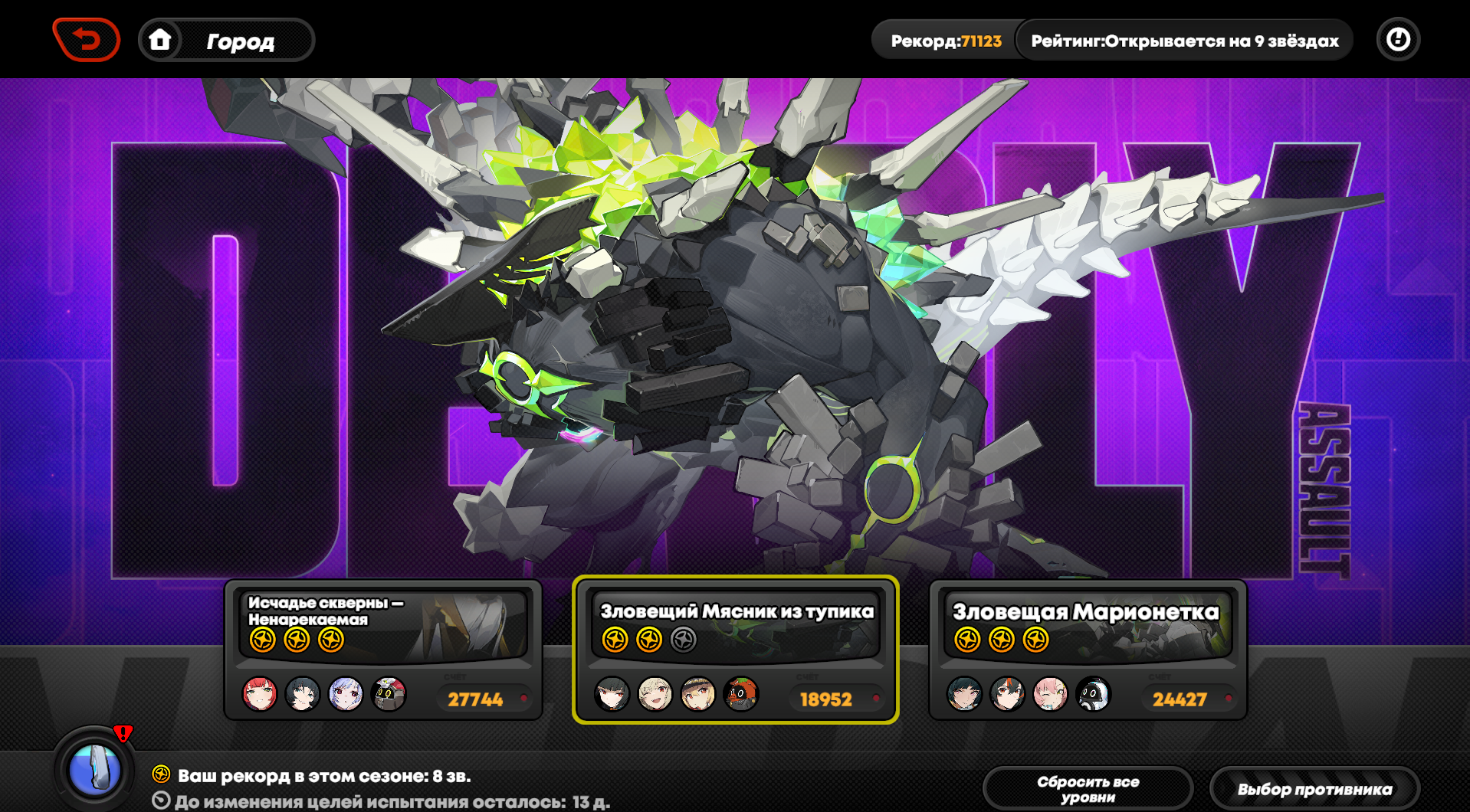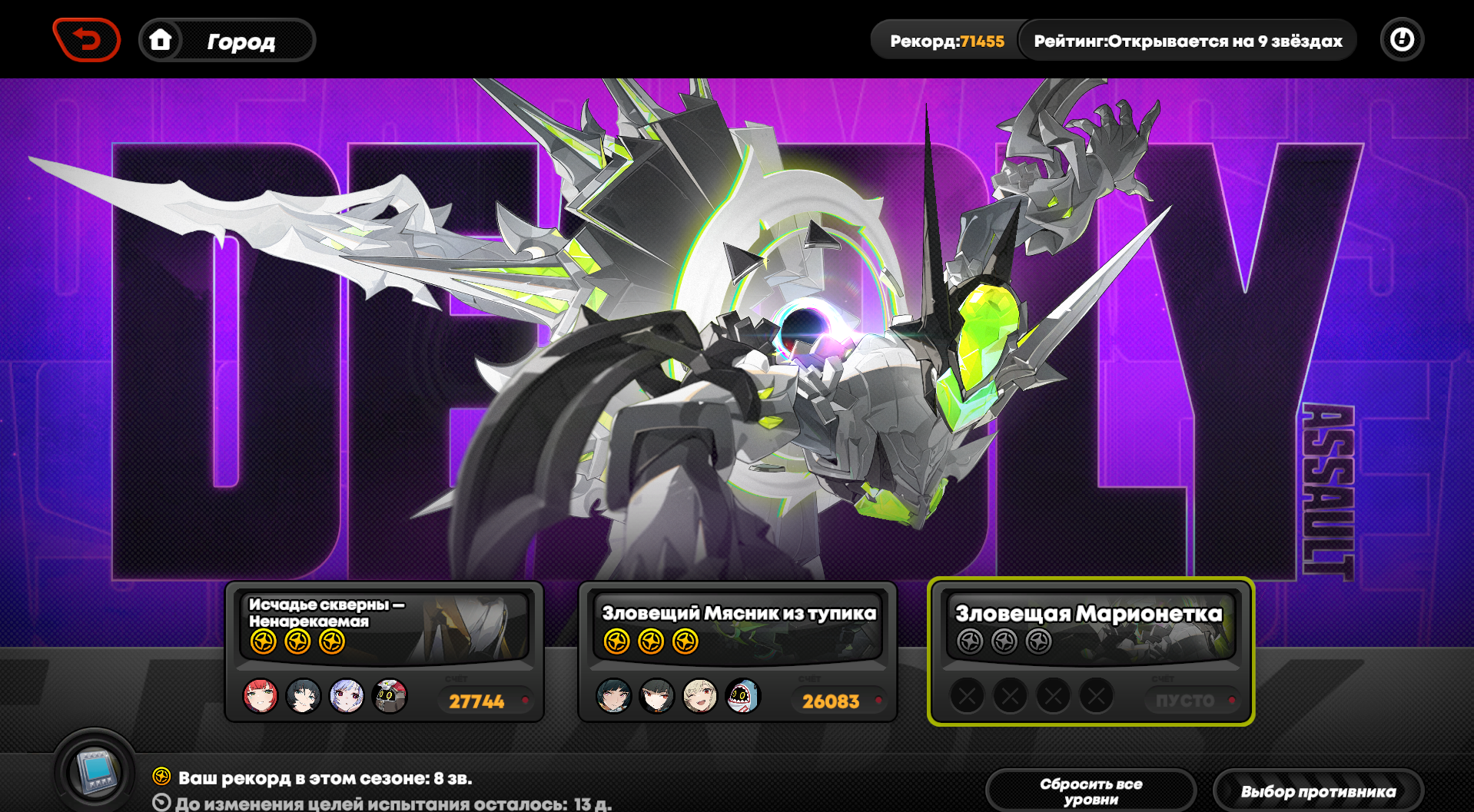 Не получается в 9 звезд, я смотрю у всех пикми на первом боссе, у меня нету, мясника и марионеток исюань и мияб закрывают с запасом, а вот эту мразь никак, 2 звезды крипнутый кал только может