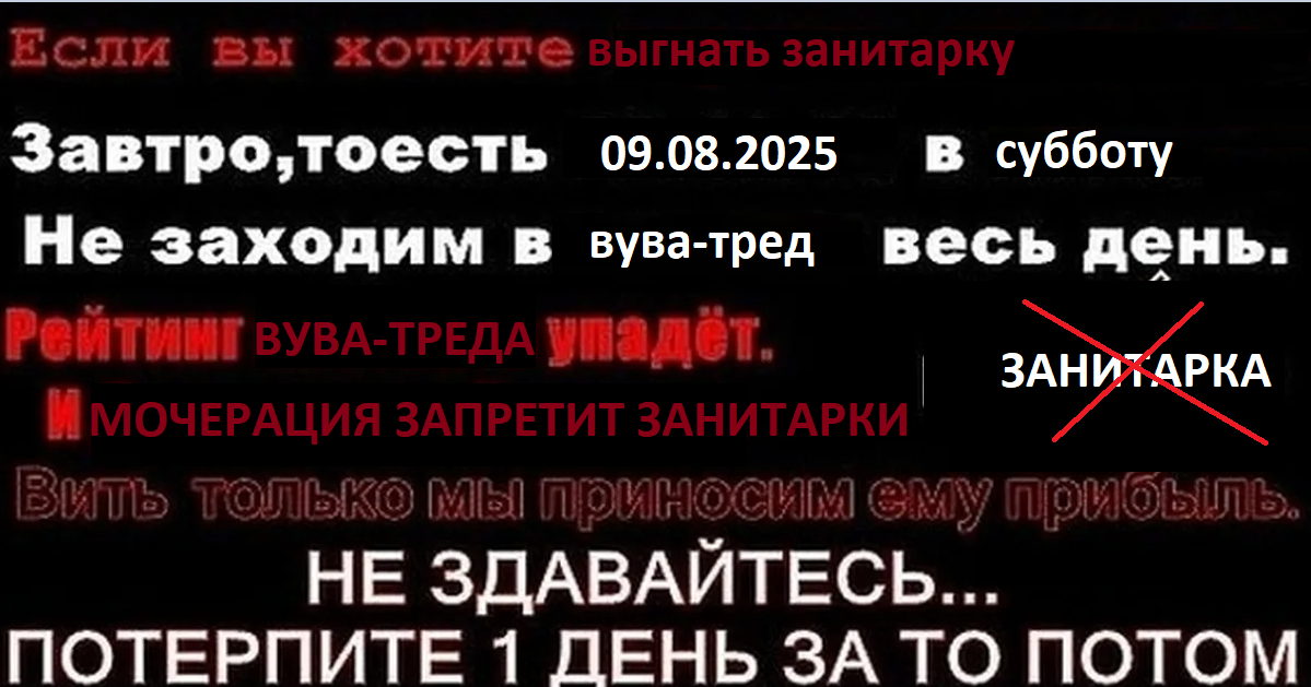 >>5380281 На то и карантин, если ты не долбоёб и хочешь чтобы в треде не воняло, то придержишься временного запрета. Случится что-то если не будешь аватарить Заней? Нет. Зато у обезьяны подгорит. Мне самому нравится Зани и я бы постил с ней контент, но воздерживаюсь чтобы не давать ощущения сплочённости этому ебанату. За него и так уже стояли горой тупые идиоты просто потому что они разделяют любовь к персонажу. Теперь он чувствует себя дохуя безнаказанным и считает что ему всё дозволено.