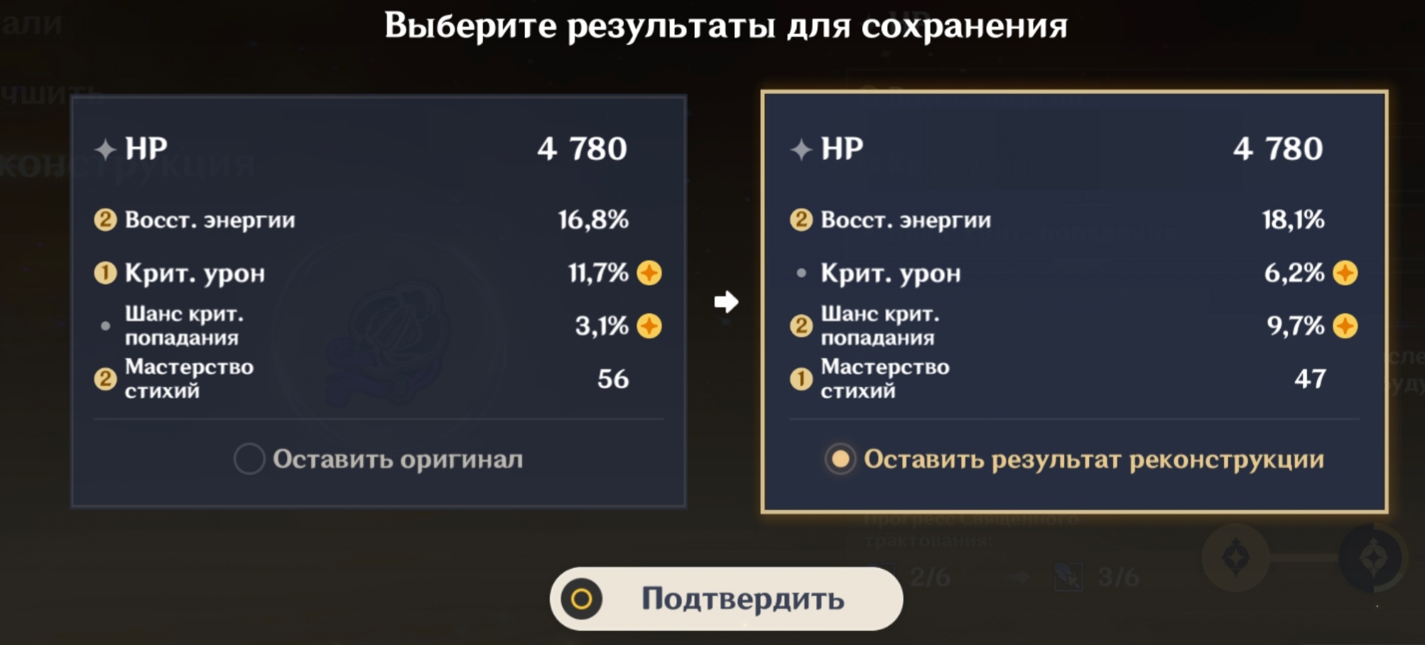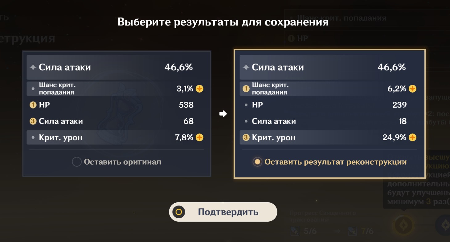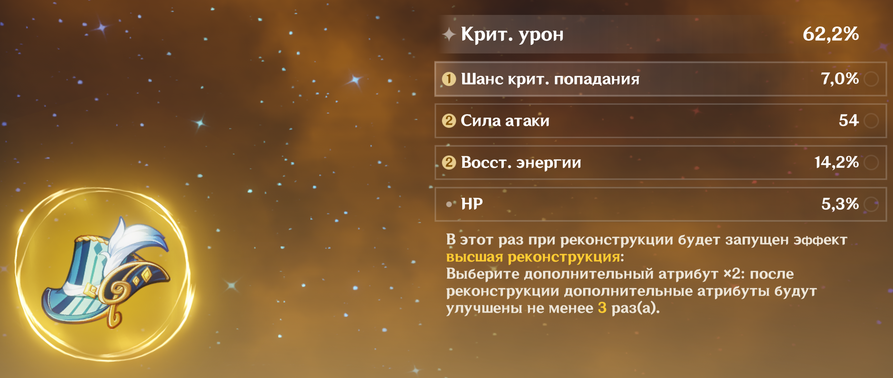 На что ни всрешь, все равно говно будет. Вы просто коупите, выбирая арт с идеальными сабстатами, чтобы не так обидно было, когда в %атк всрется, а не во флат атк.