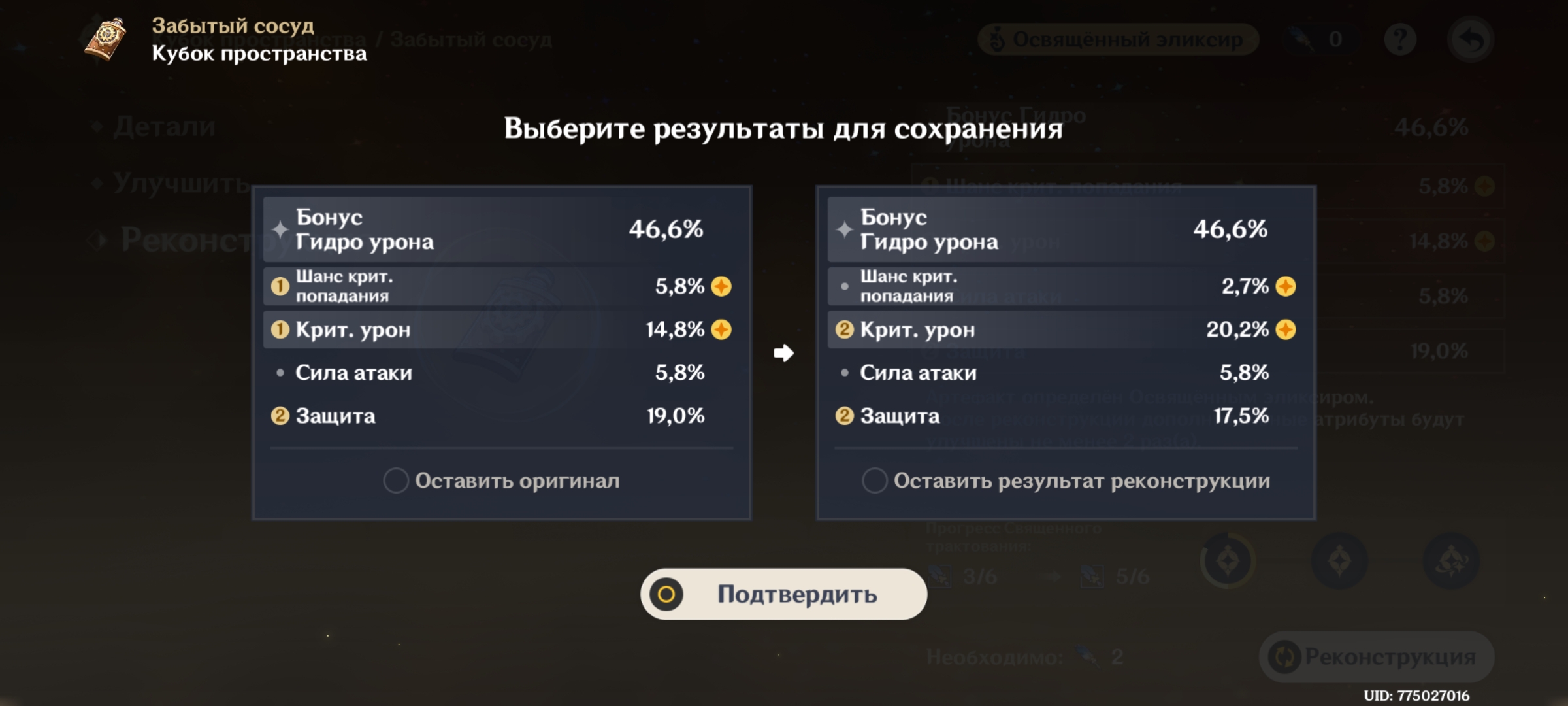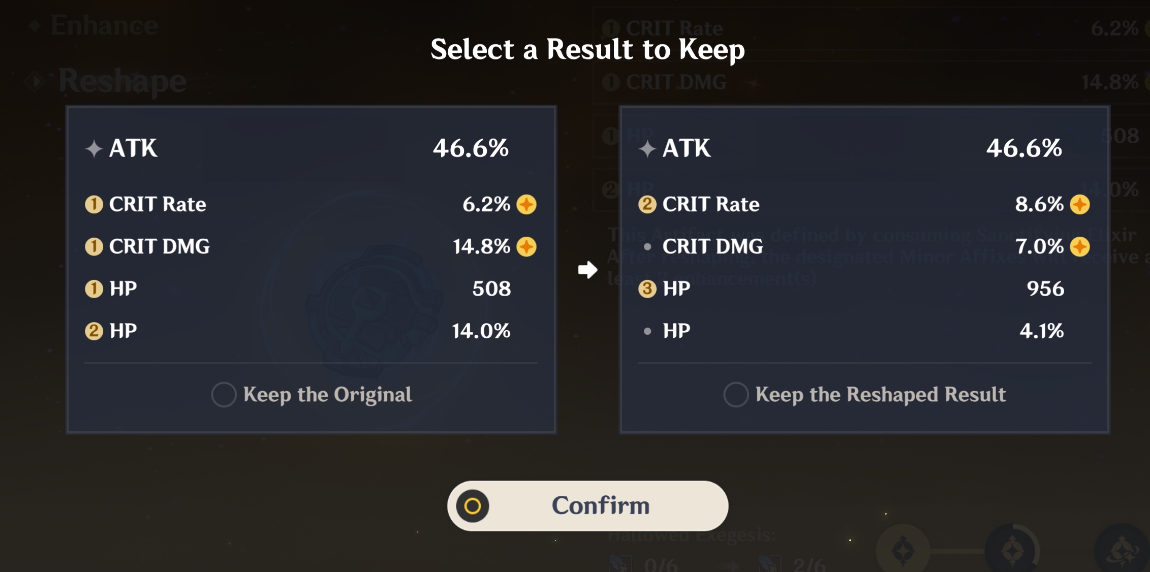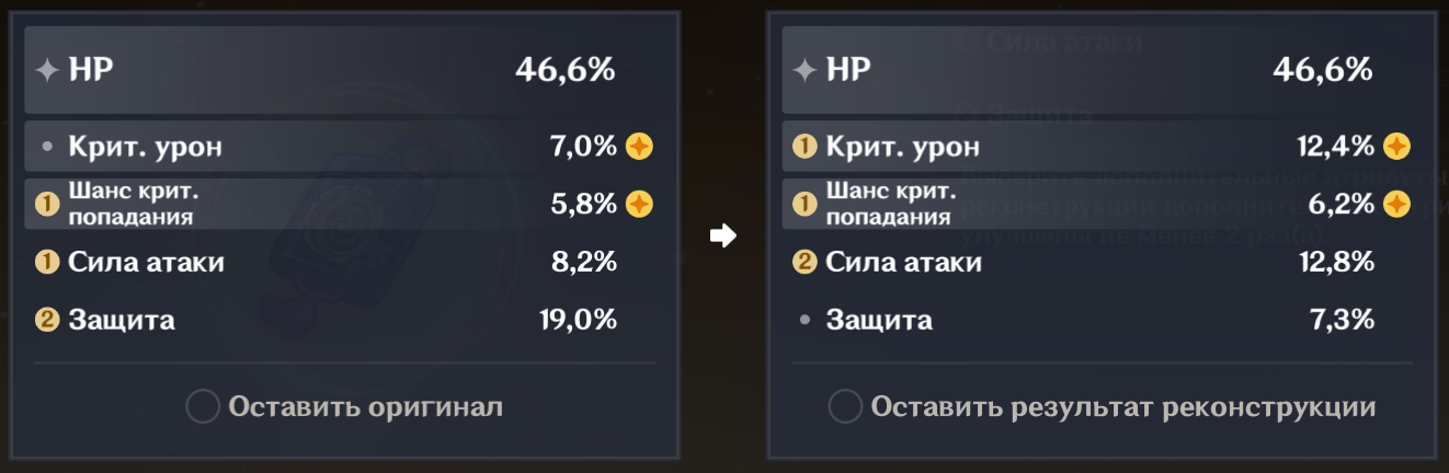 На что ни всрешь, все равно говно будет. Вы просто коупите, выбирая арт с идеальными сабстатами, чтобы не так обидно было, когда в %атк всрется, а не во флат атк.