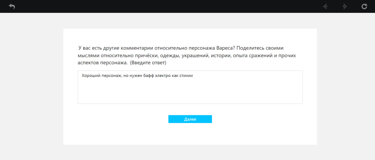 Лиза: Я могу сделать что угодно, если захочу. Лиза: Разве что... Лиза: Обычно мне кажется, что всё это не заслуживает усилий. Лиза: Но к тебе я отношусь по-особенному. Для тебя мне ничего не жалко. Лиза: Хм... Возможно, вместо того, чтобы спрашивать о твоих предпочтениях... Лиза: ...сделать все пирожные сразу? Было бы сюрпризом. Иконка Диалог Реплика Уже только одна твоя забота для меня самый приятный сюрприз. Лиза: Ах, напомни не добавлять много сахара, потому что ты, милашка, и так очень сладкий(ая). Лиза: Ладно, мне надо как следует подготовиться... Лиза: Нельзя, чтоб ты меня недооценивал(а).