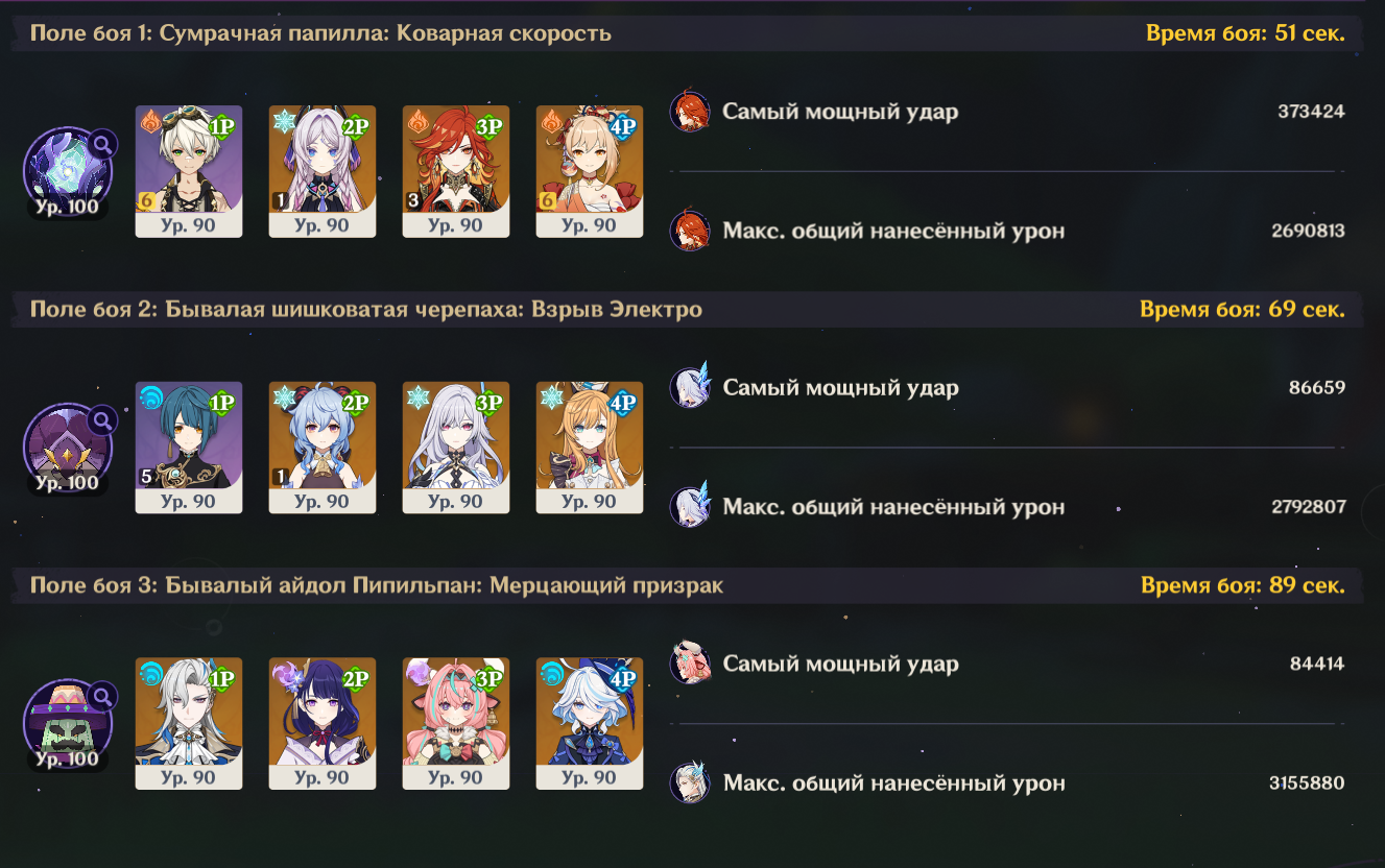 А кактуса умудрялись проходить с С3R1 Райден, Елань, Фишль, Сахароза. И говорят что 5й кактус можно четверками пройти, только прокачанные и С6 должны быть: сахароза, синий, фишль, оророн.