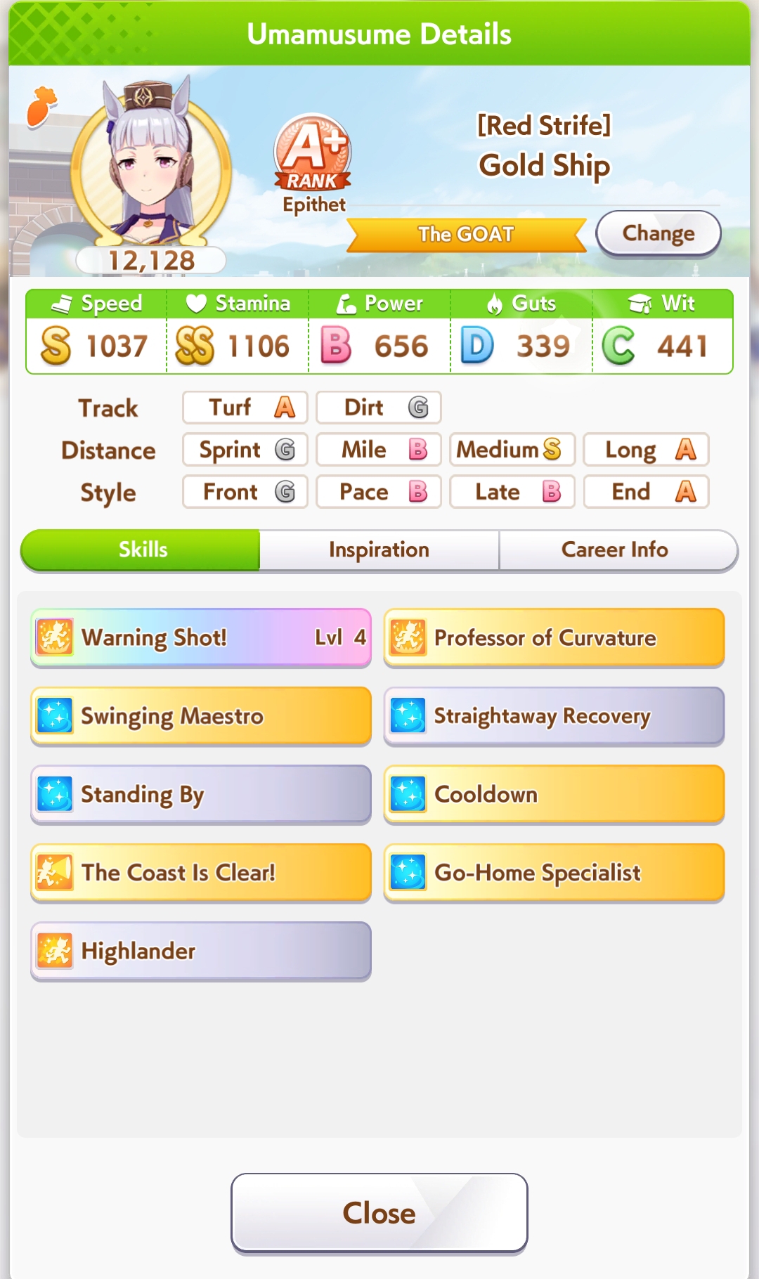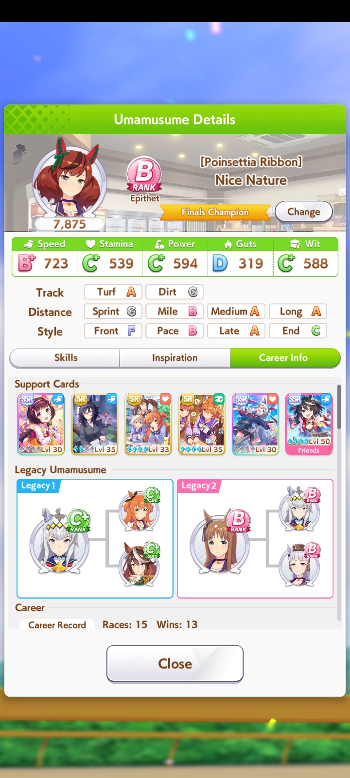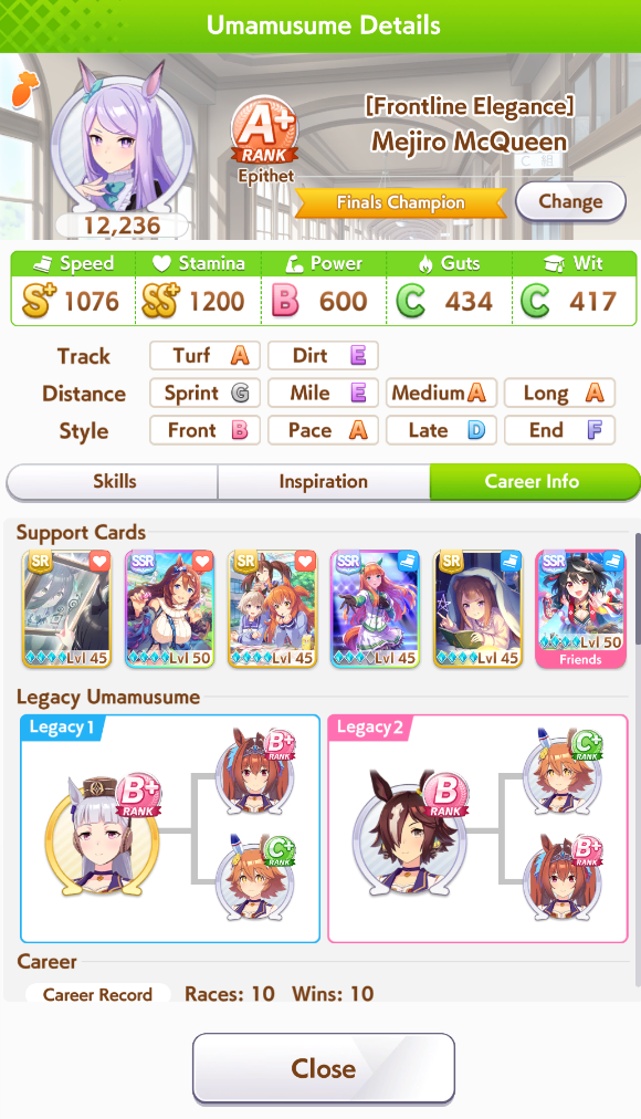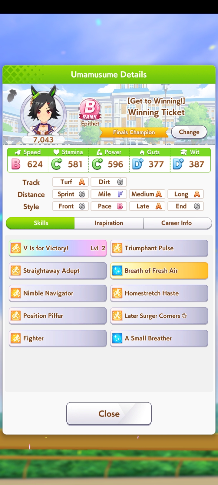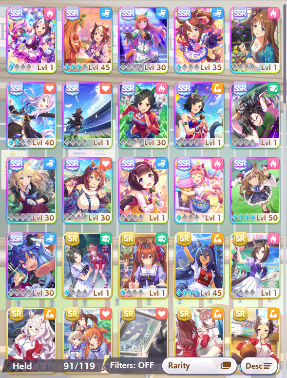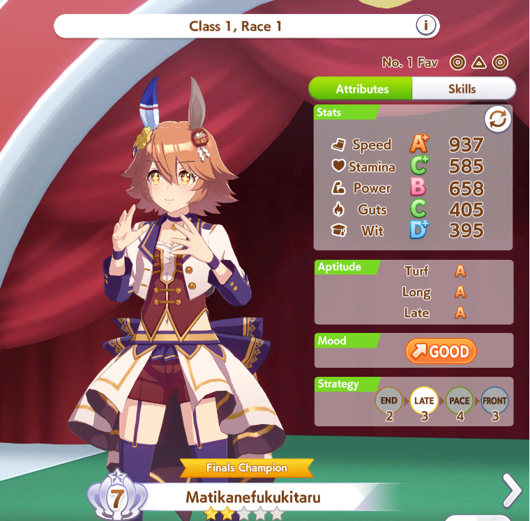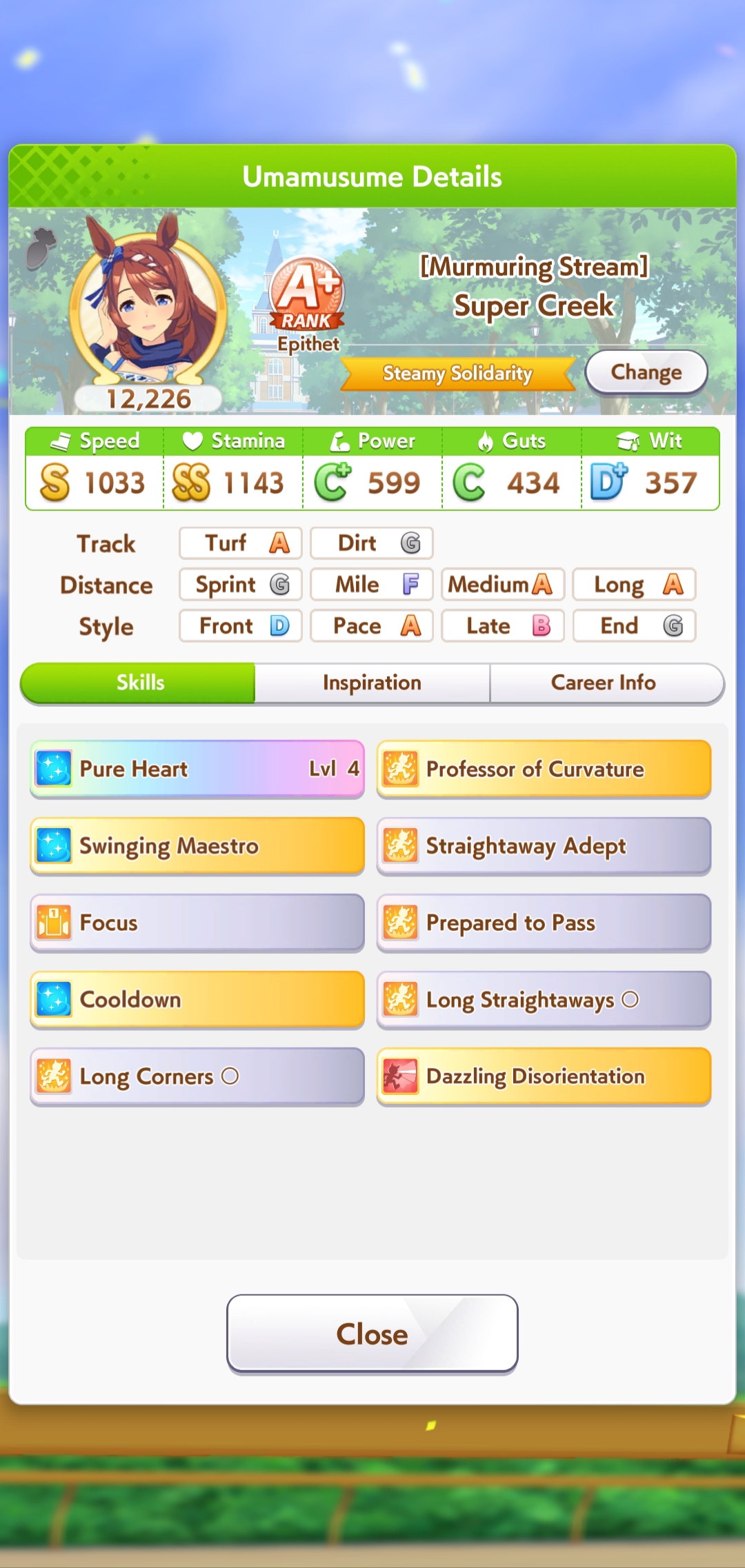 Грув в спринтера со второй попытки вкачалась, первую я похерил невкачем стамины. Для фулл ролей осталось дертовика выбить, будь то Эль Кондор Паса или айдол из завтрашнего баннера. Но конечно 1 трехзвездочная лошадь, да и та с рандомными предками, удручает.