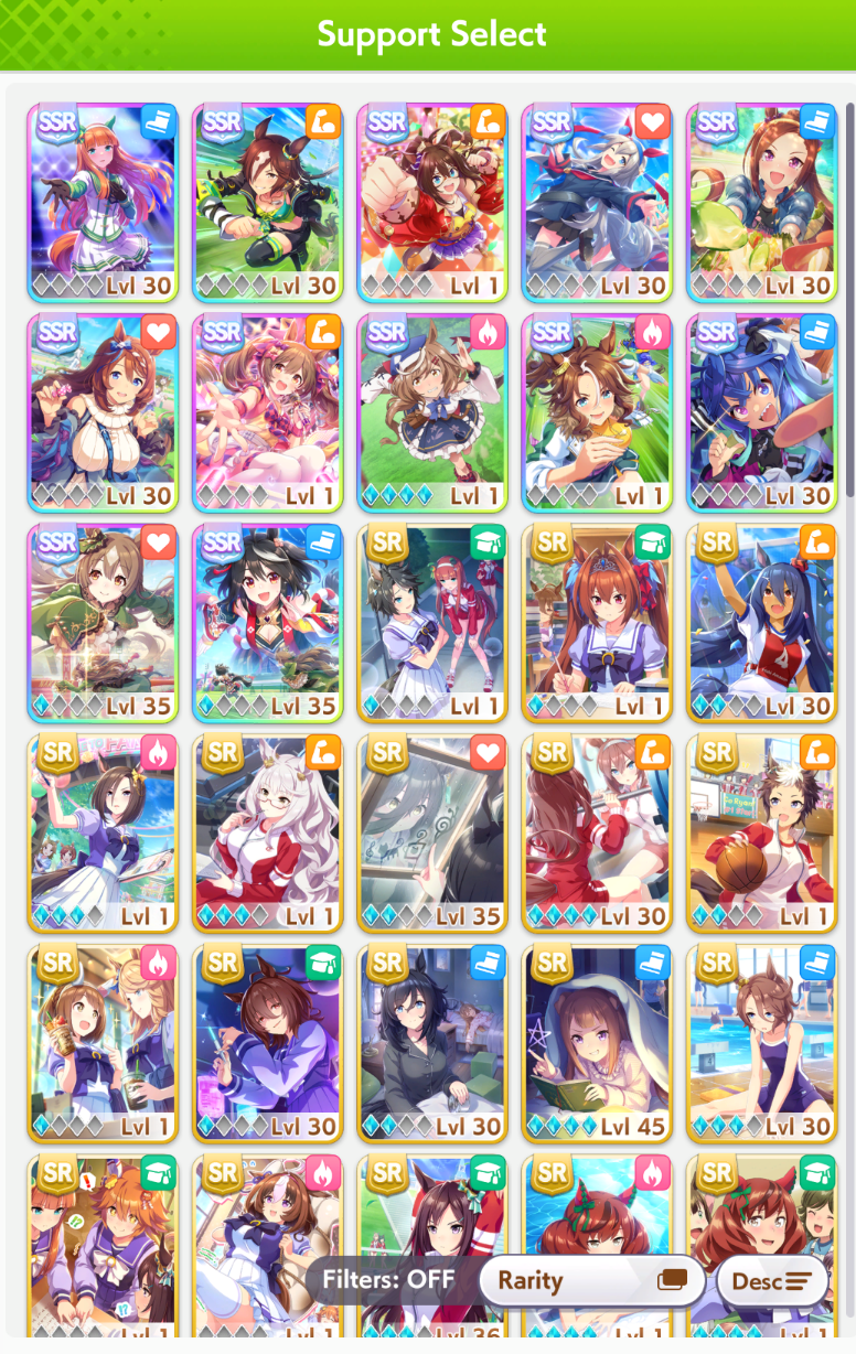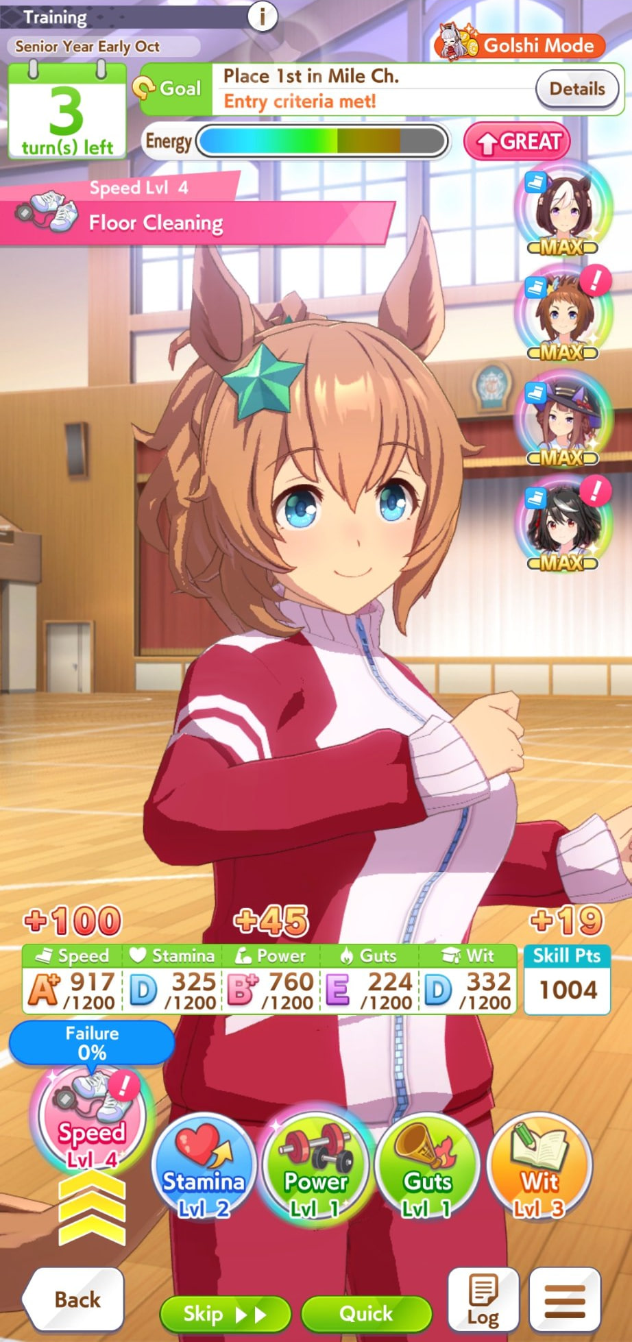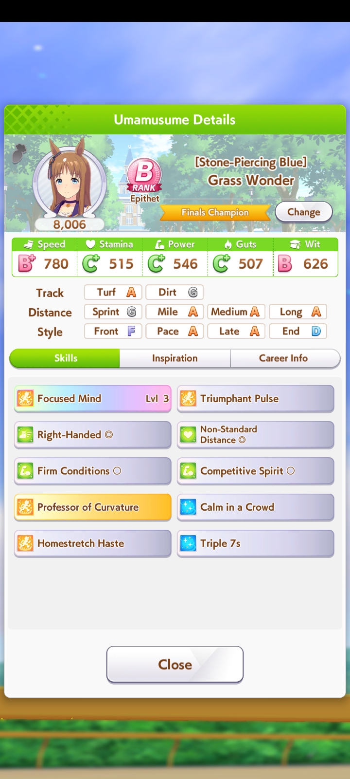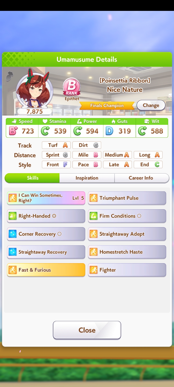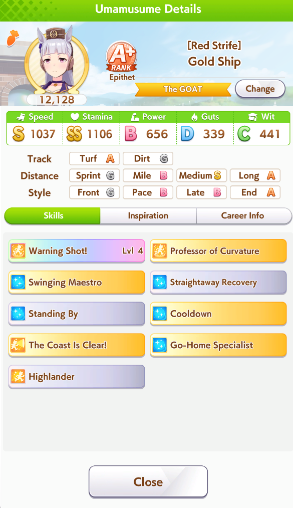 Грув в спринтера со второй попытки вкачалась, первую я похерил невкачем стамины. Для фулл ролей осталось дертовика выбить, будь то Эль Кондор Паса или айдол из завтрашнего баннера. Но конечно 1 трехзвездочная лошадь, да и та с рандомными предками, удручает.
