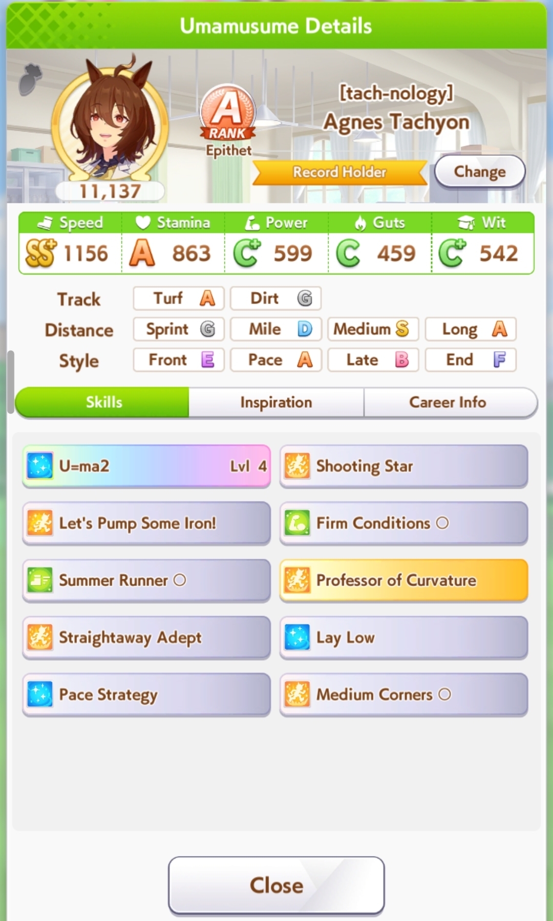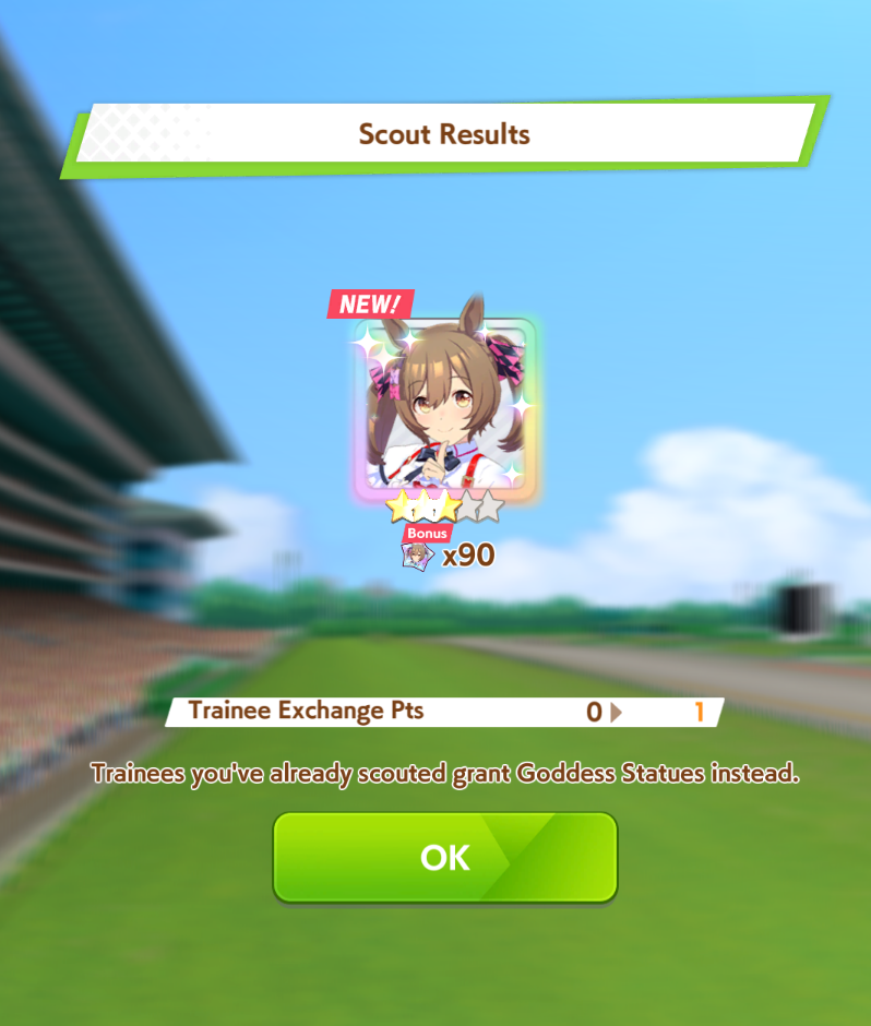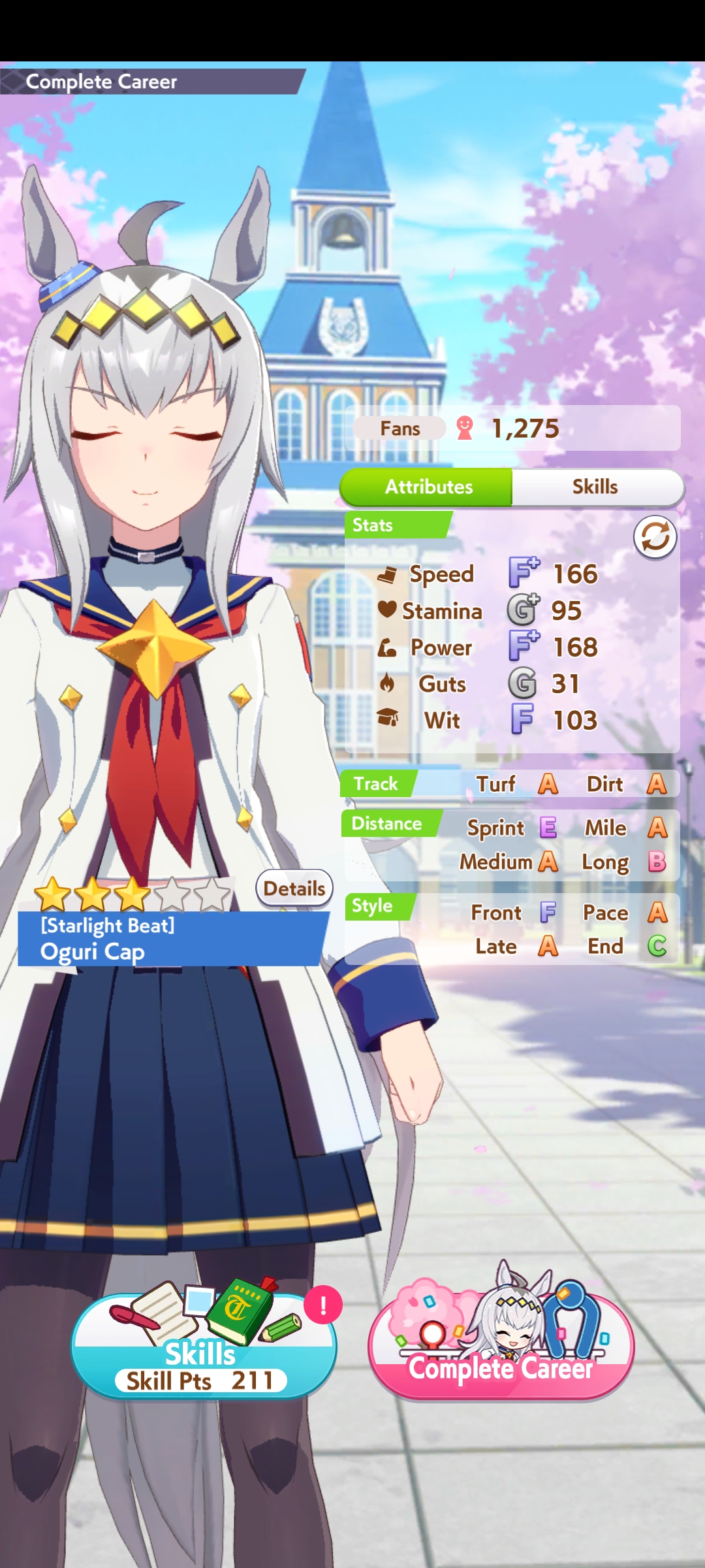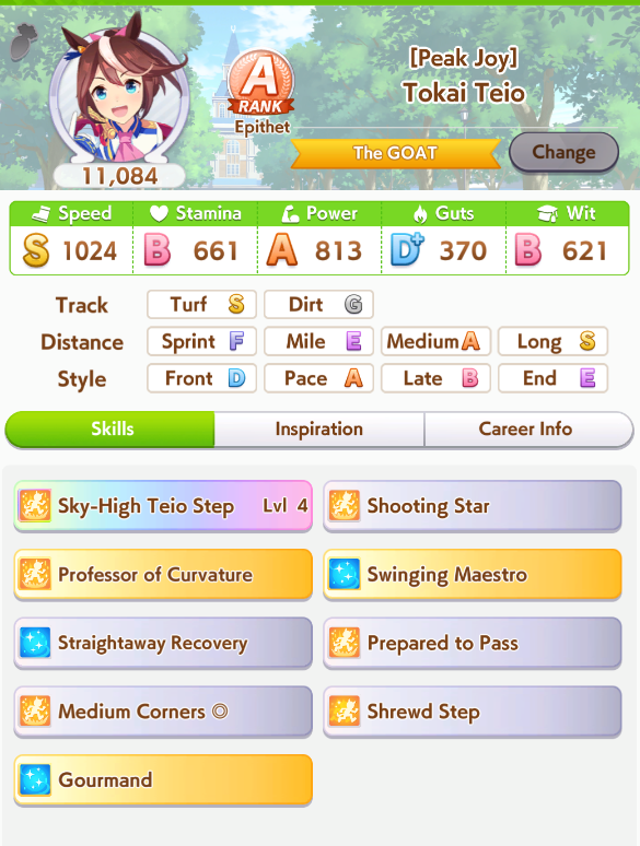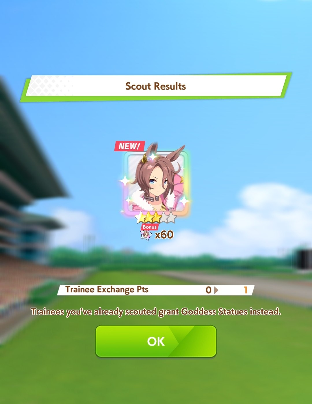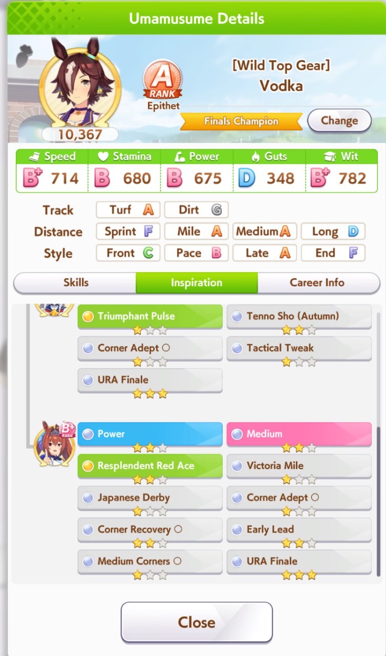 Грув в спринтера со второй попытки вкачалась, первую я похерил невкачем стамины. Для фулл ролей осталось дертовика выбить, будь то Эль Кондор Паса или айдол из завтрашнего баннера. Но конечно 1 трехзвездочная лошадь, да и та с рандомными предками, удручает.