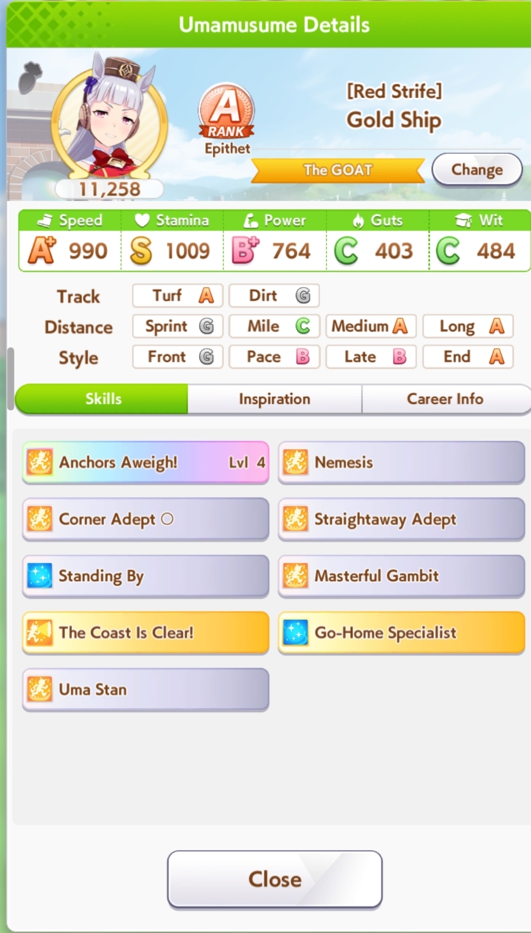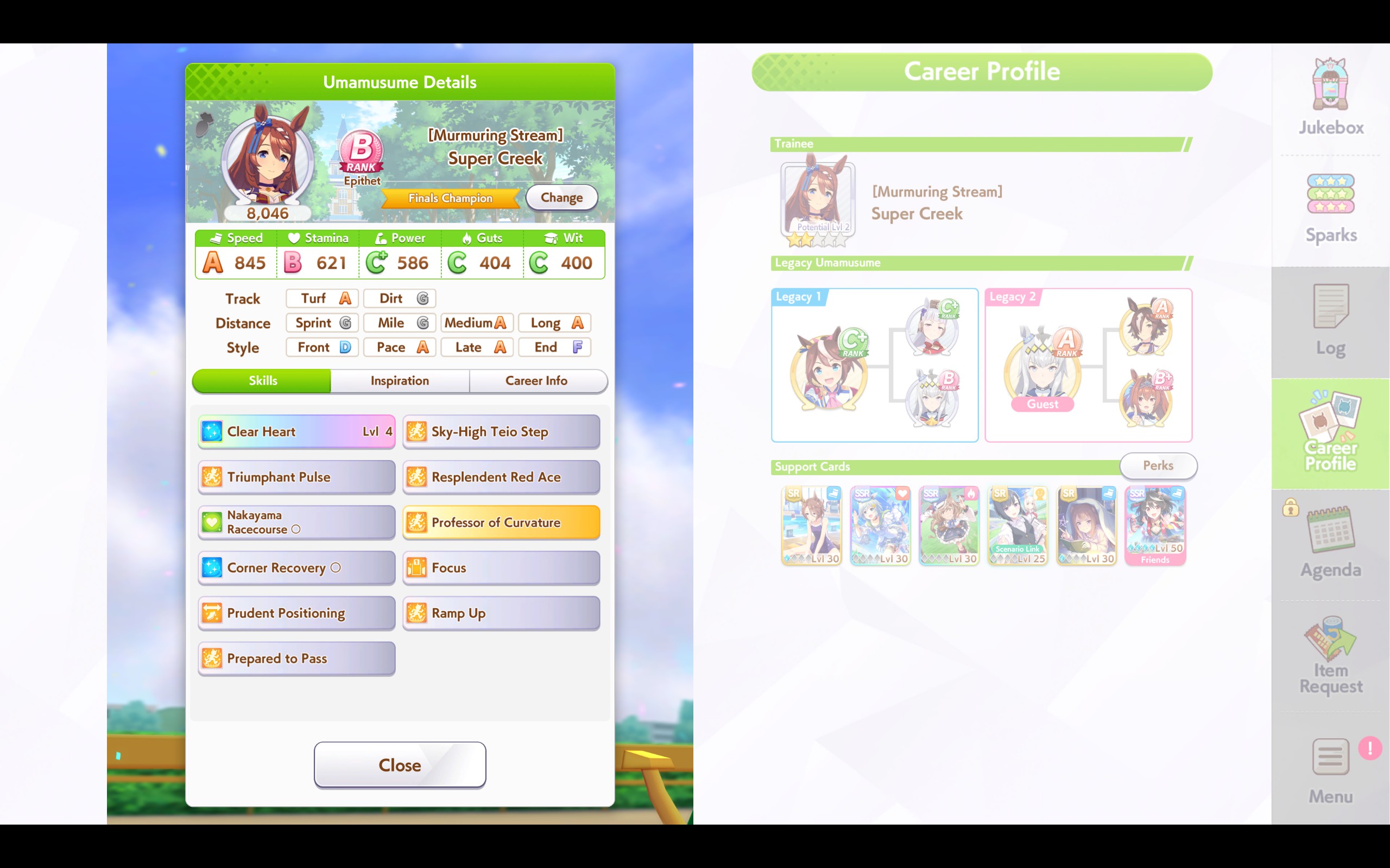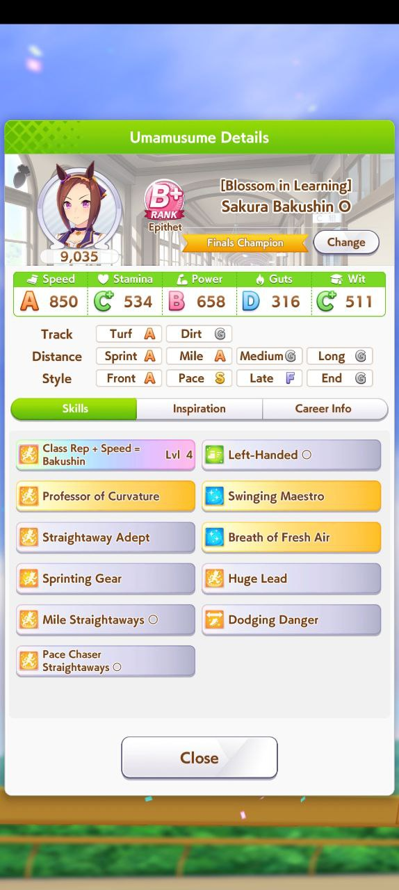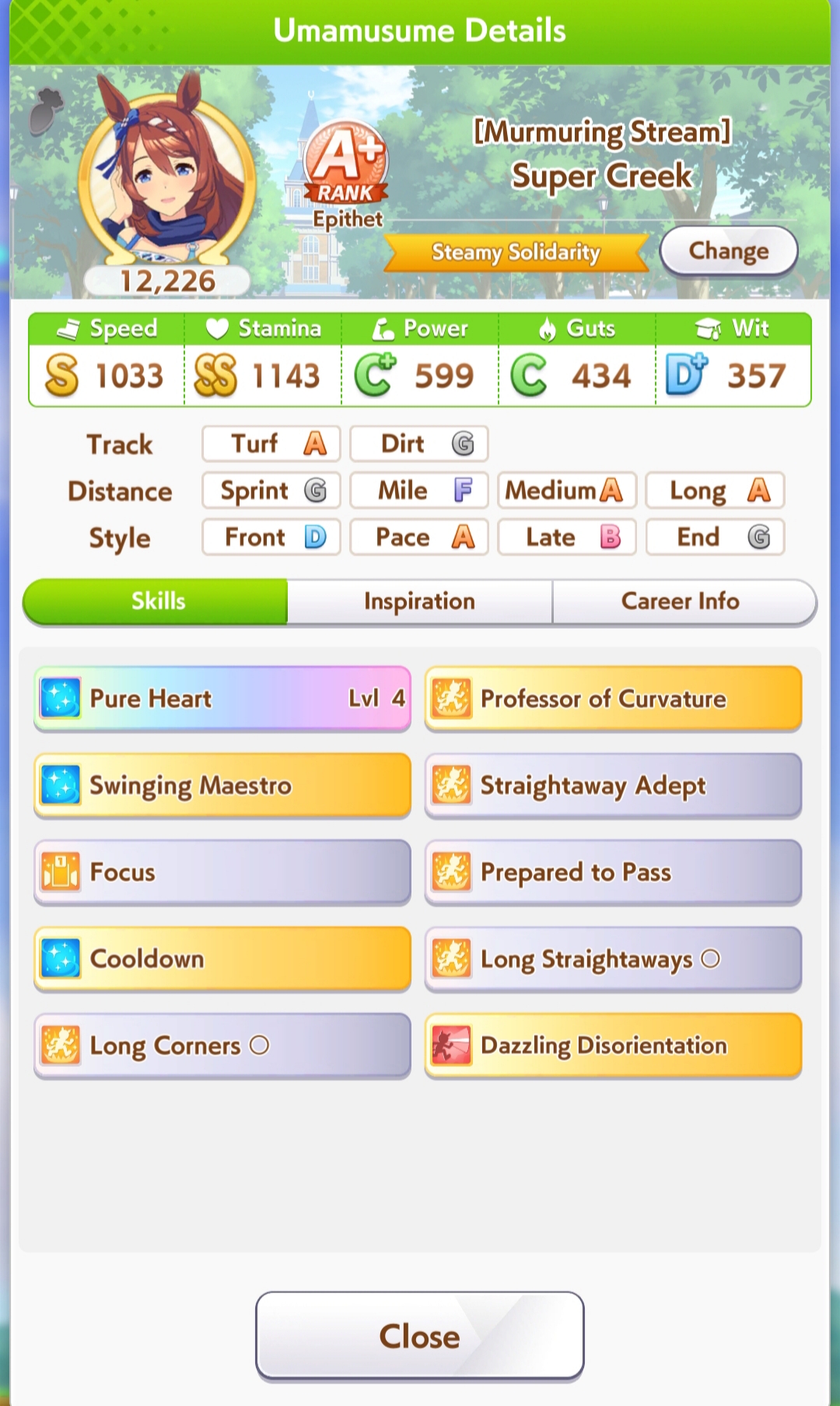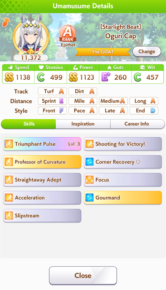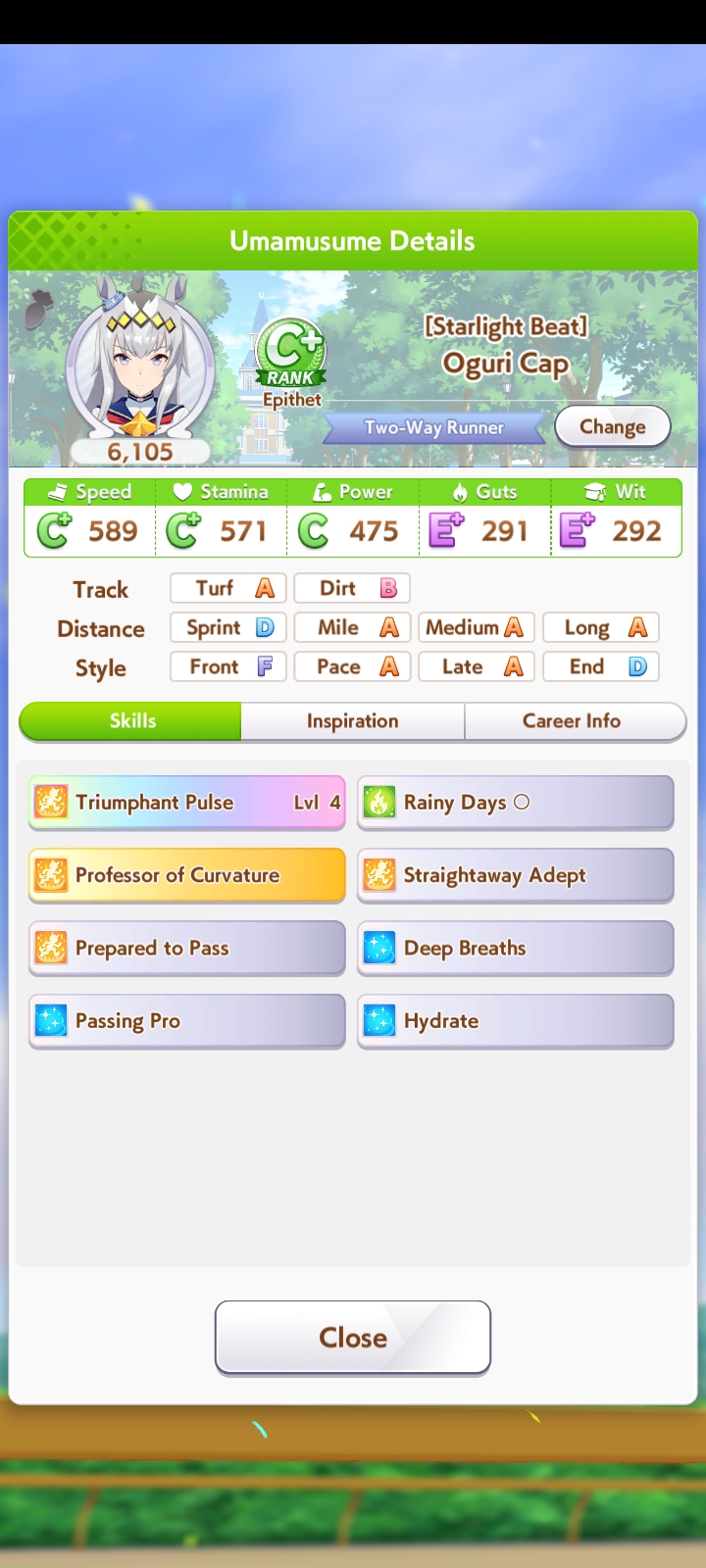 Грув в спринтера со второй попытки вкачалась, первую я похерил невкачем стамины. Для фулл ролей осталось дертовика выбить, будь то Эль Кондор Паса или айдол из завтрашнего баннера. Но конечно 1 трехзвездочная лошадь, да и та с рандомными предками, удручает.