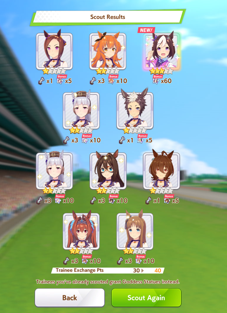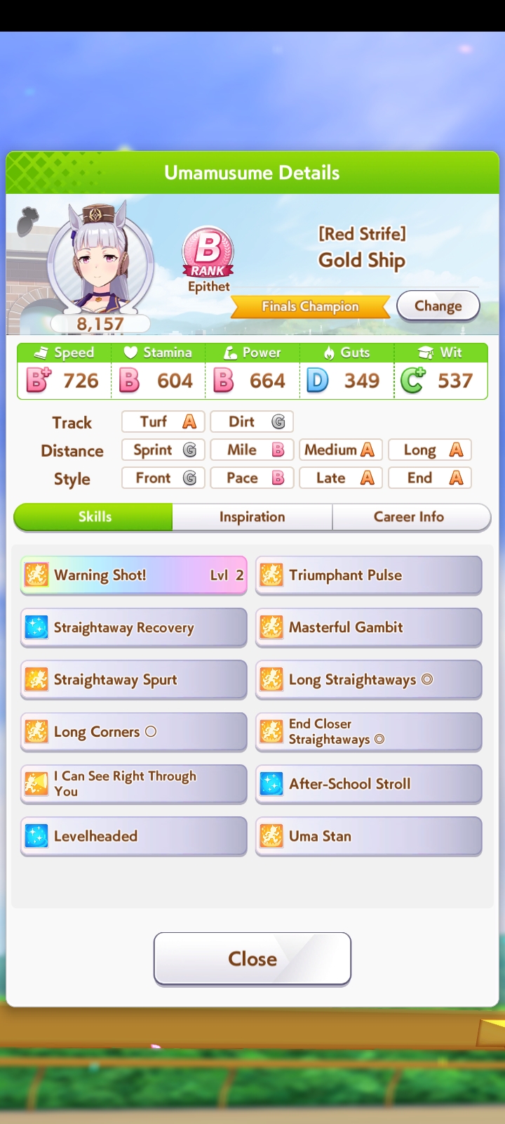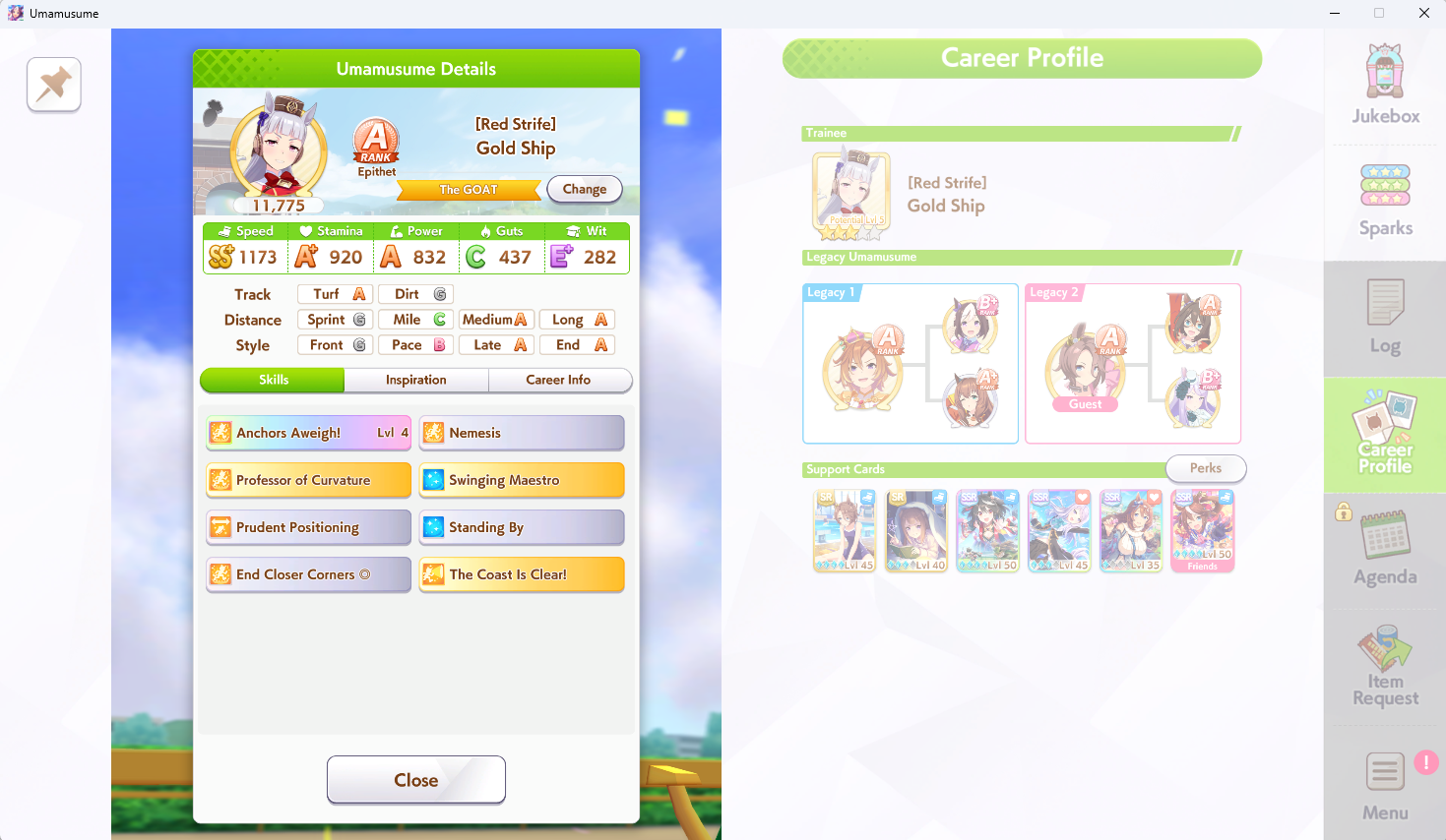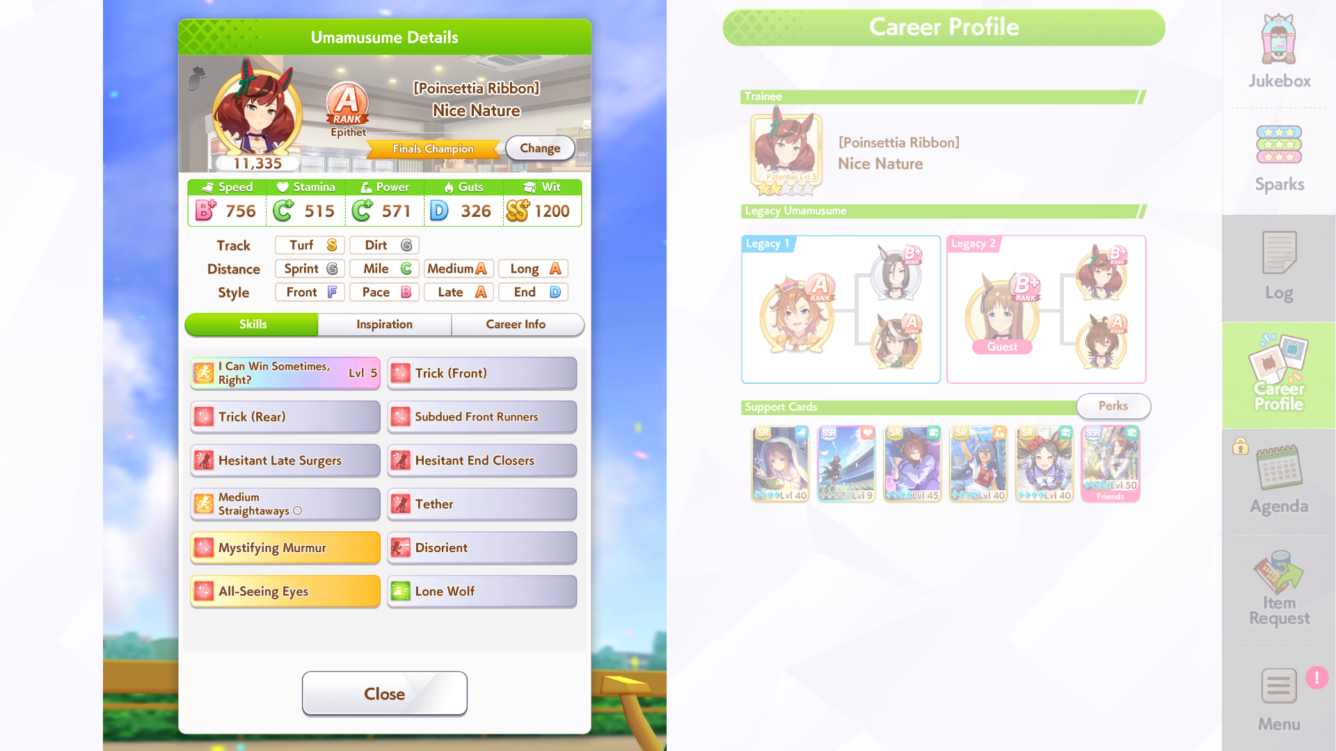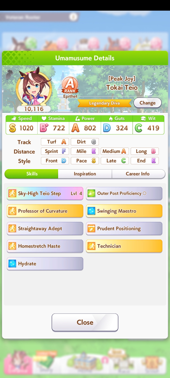 Грув в спринтера со второй попытки вкачалась, первую я похерил невкачем стамины. Для фулл ролей осталось дертовика выбить, будь то Эль Кондор Паса или айдол из завтрашнего баннера. Но конечно 1 трехзвездочная лошадь, да и та с рандомными предками, удручает.