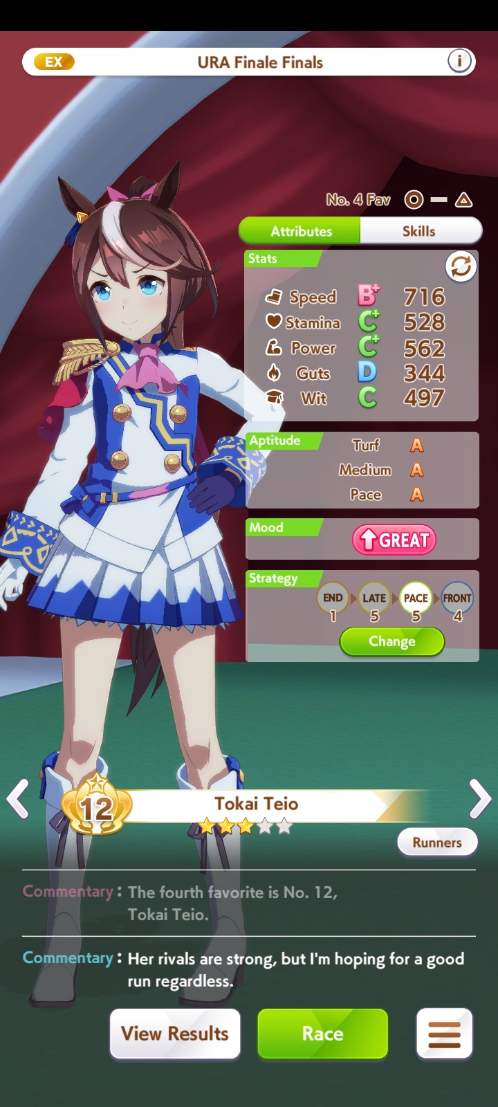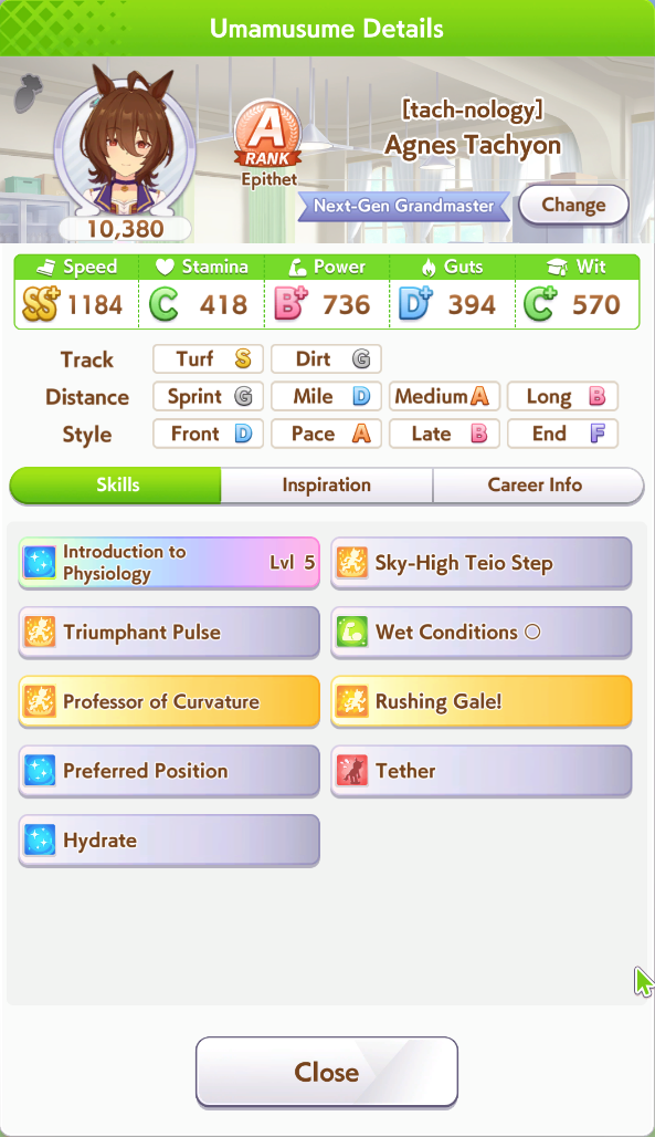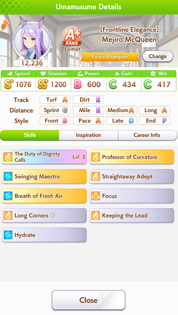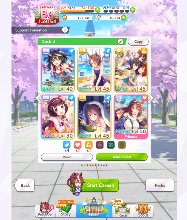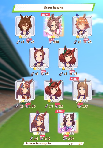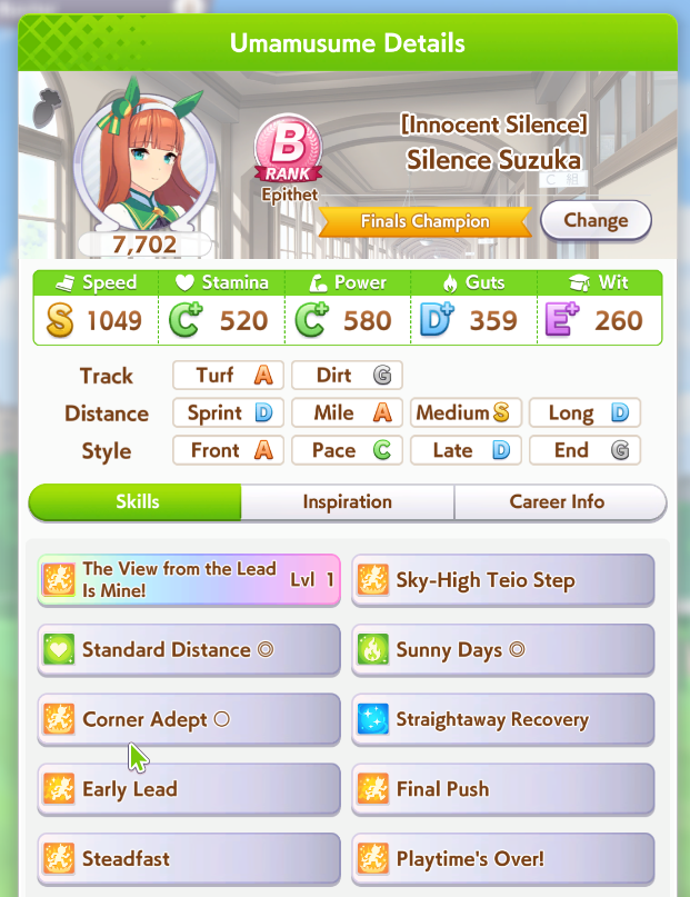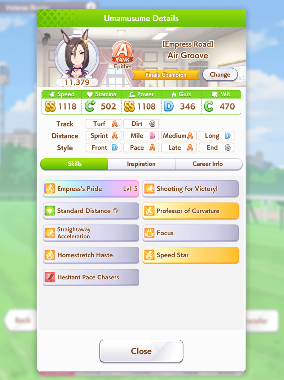Грув в спринтера со второй попытки вкачалась, первую я похерил невкачем стамины. Для фулл ролей осталось дертовика выбить, будь то Эль Кондор Паса или айдол из завтрашнего баннера. Но конечно 1 трехзвездочная лошадь, да и та с рандомными предками, удручает.