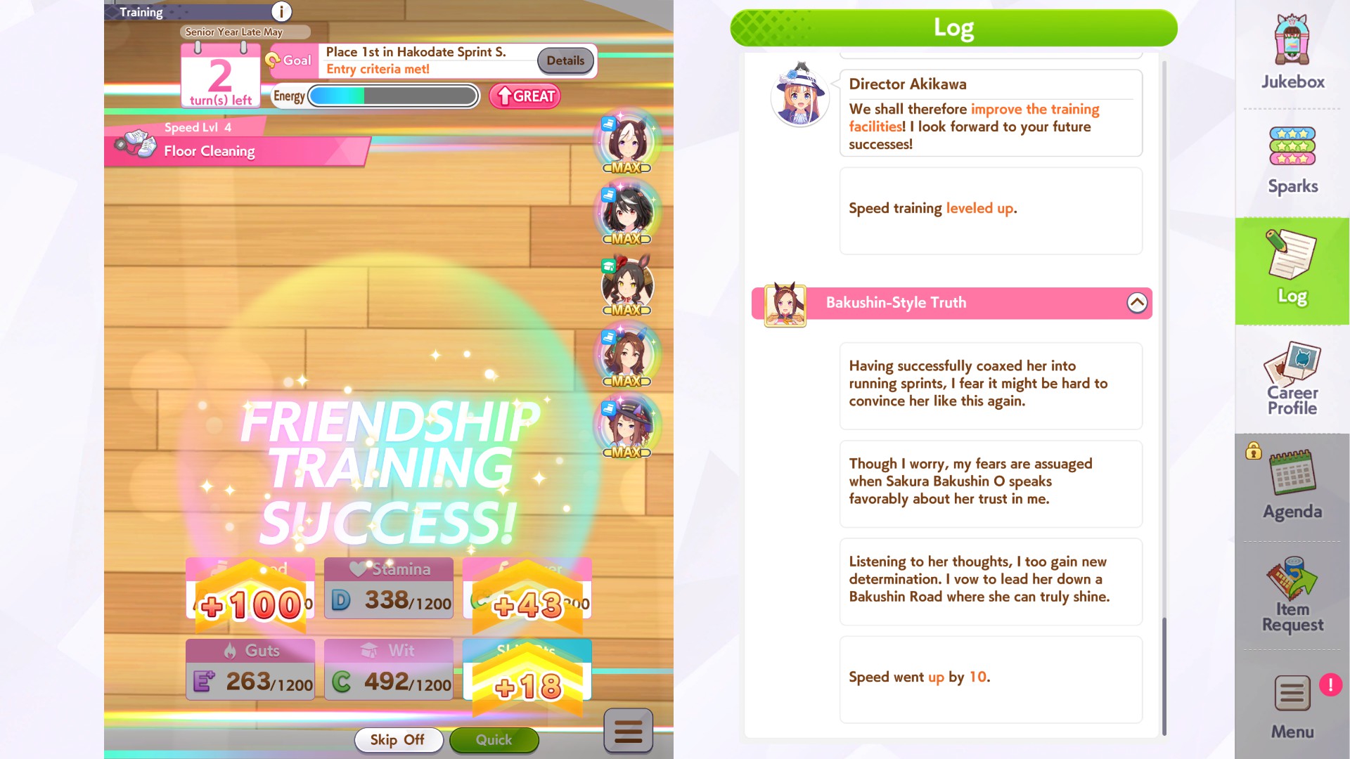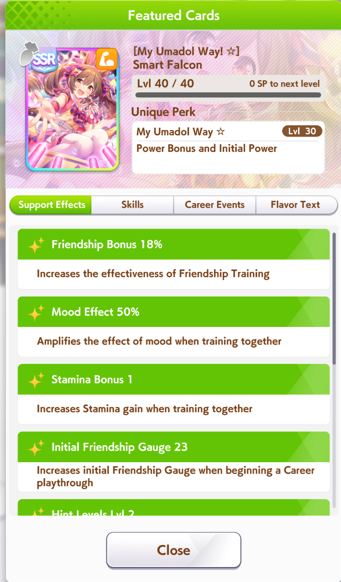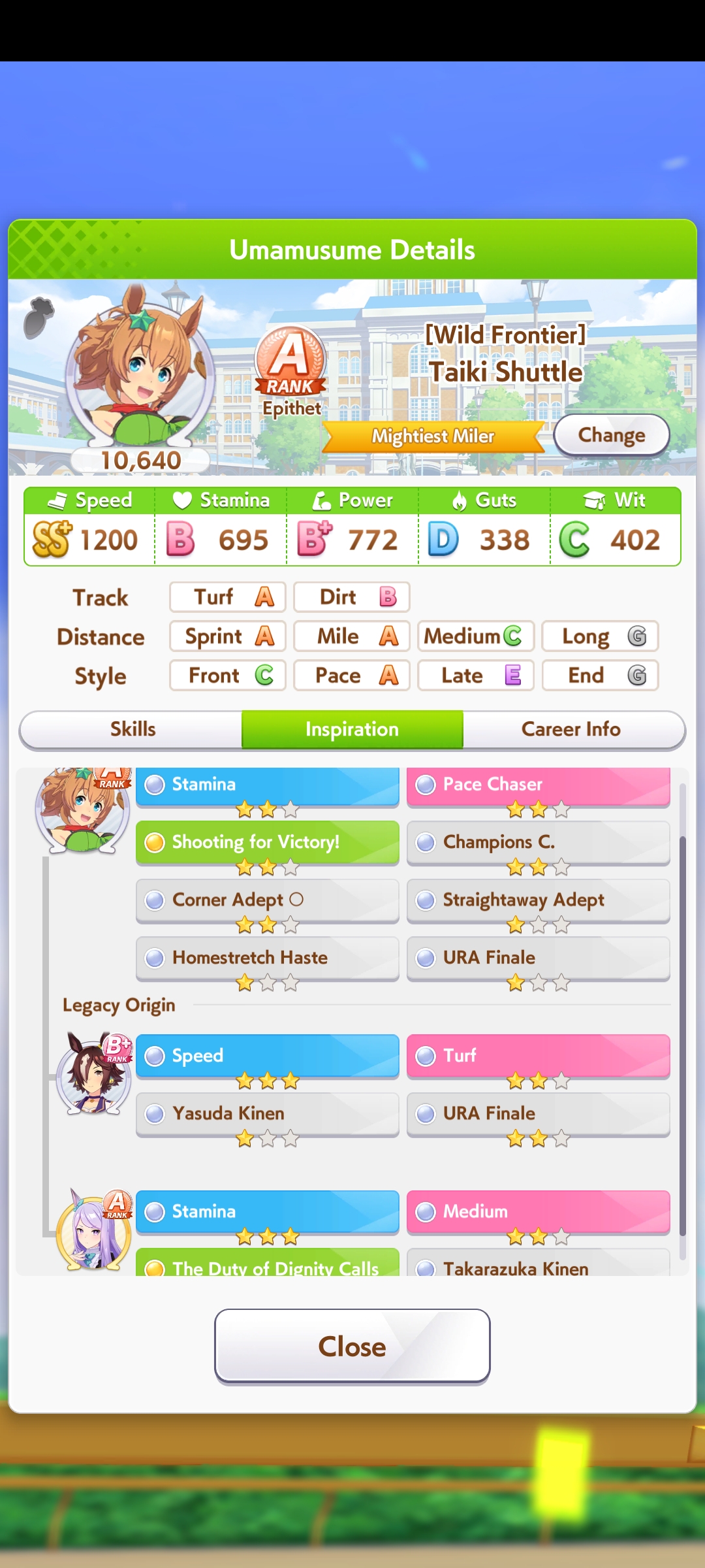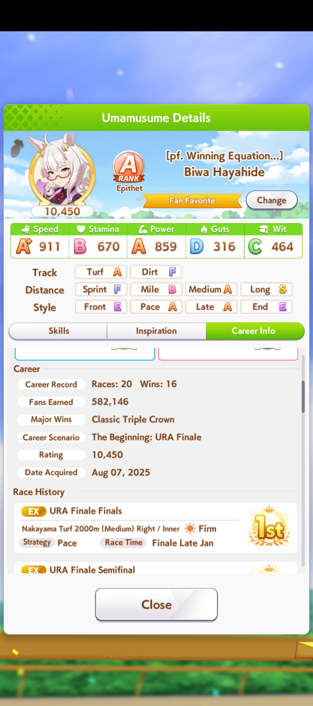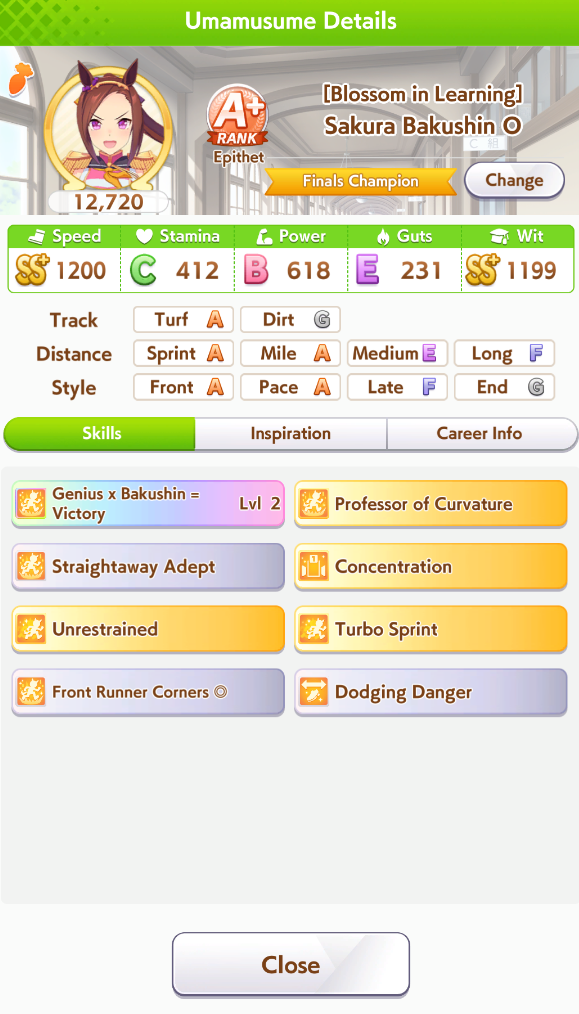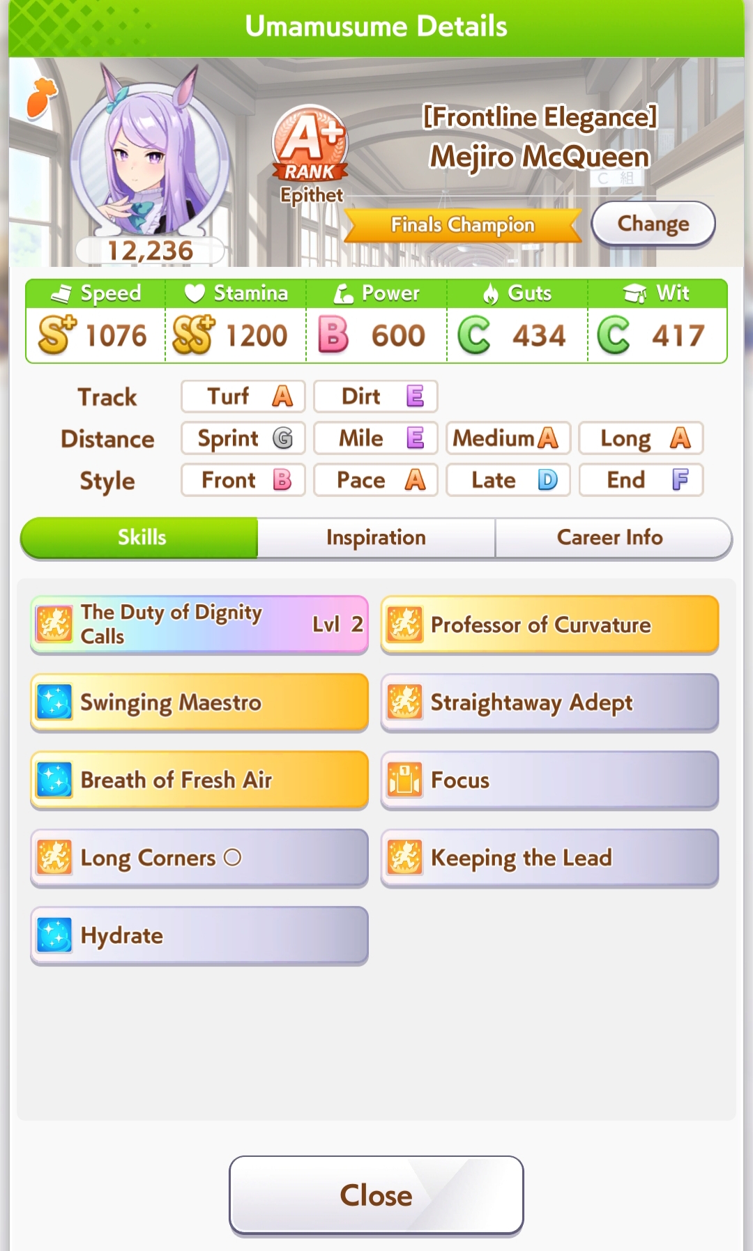 Грув в спринтера со второй попытки вкачалась, первую я похерил невкачем стамины. Для фулл ролей осталось дертовика выбить, будь то Эль Кондор Паса или айдол из завтрашнего баннера. Но конечно 1 трехзвездочная лошадь, да и та с рандомными предками, удручает.