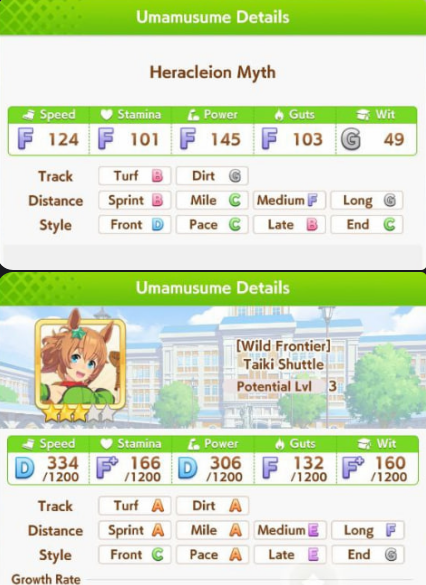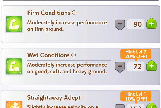 Вообще для себя сделал небольшие ориентиры для безпроблемного дебюта нужно 150 спида и где-то 120-130 остальных статов, разве что вит можно особо не парится, чуть за сто, навыков всё-равно то нет. Для следующих гонок первого года надо выходить за 200 по спиду и подтягивать желательно к этому же уровню повер и стамину, хотя если длинные-средние не бегаешь то стамину можно чуть просаживать, потом докачаешь.