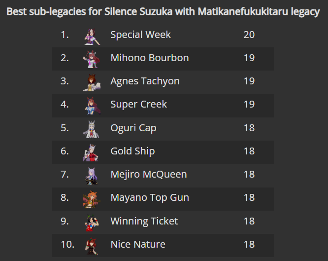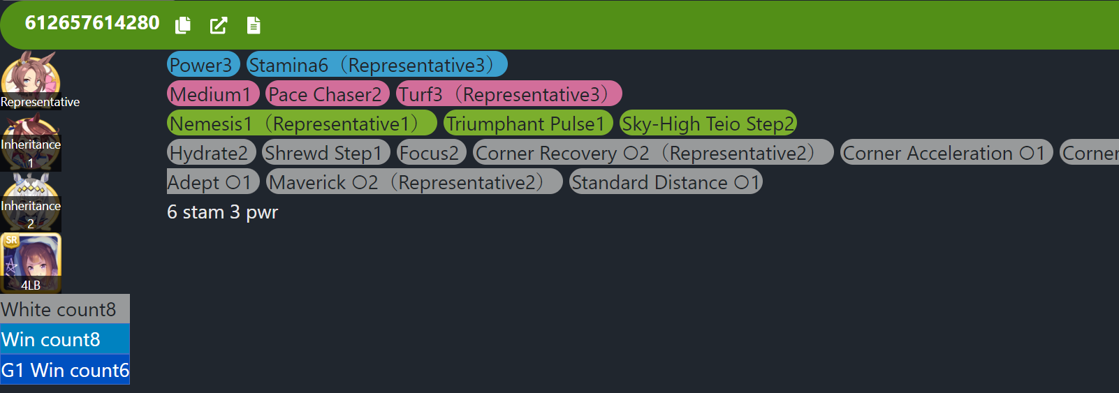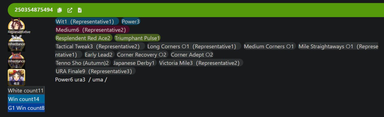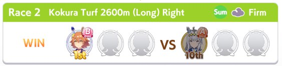 Ʊ Симулятор забегов: https://alpha123.github.io/uma-tools/umalator-global/ Не претендует на идеальную точность, но даёт примерно сравнить несколько лошадей на определённой карте (седующий цм - Tokyo Turf 2400m (Medium) Left Spring Sunny Firm)