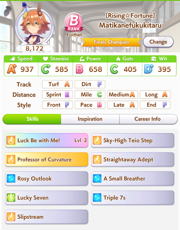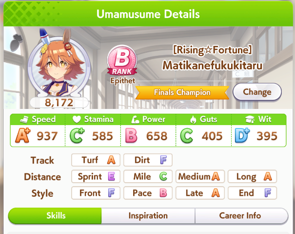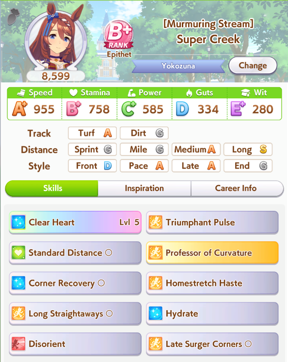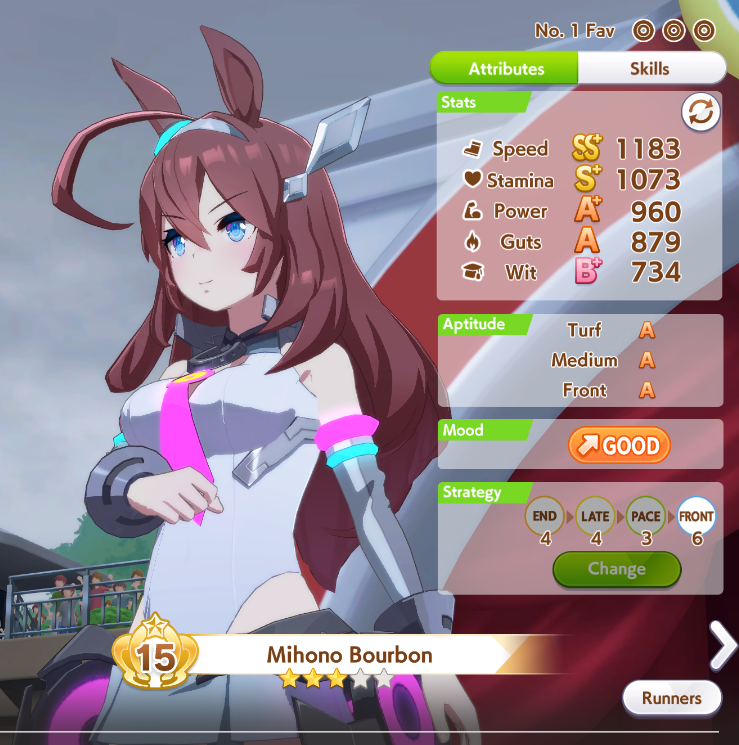 >>5357556 1200 спида, 700+ стамины, 700+ павера если не фронтовичек, 500+ вита. Обязательно силы на стамину, чем больше тем лучше. Скилы для разгона в финальной прямой. Ну и s для лонга и стиля через батей.