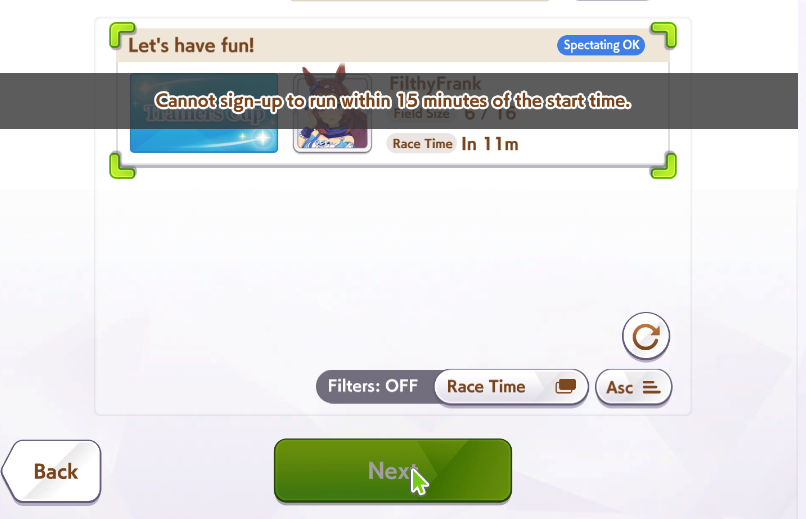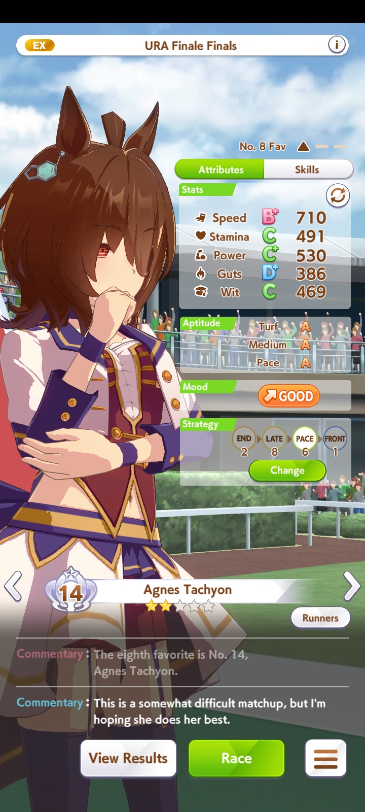 Играю всего пару дней, и многие нюансы еще не вдуплил. Например когда мне тренировать лошадь, если гонки начинают идти буквально через 0-3 хода? При этом сложность повышается, а я еще и ловлю ночную сову. Почему приход на 2-3е место в одних гонках нихуя не решает, а в других это конец карьеры? При этом например на 3ем месте - конец, а на втором можно играть дальше. Стоит на вкате крутить гачу, или копить на что то интересное?