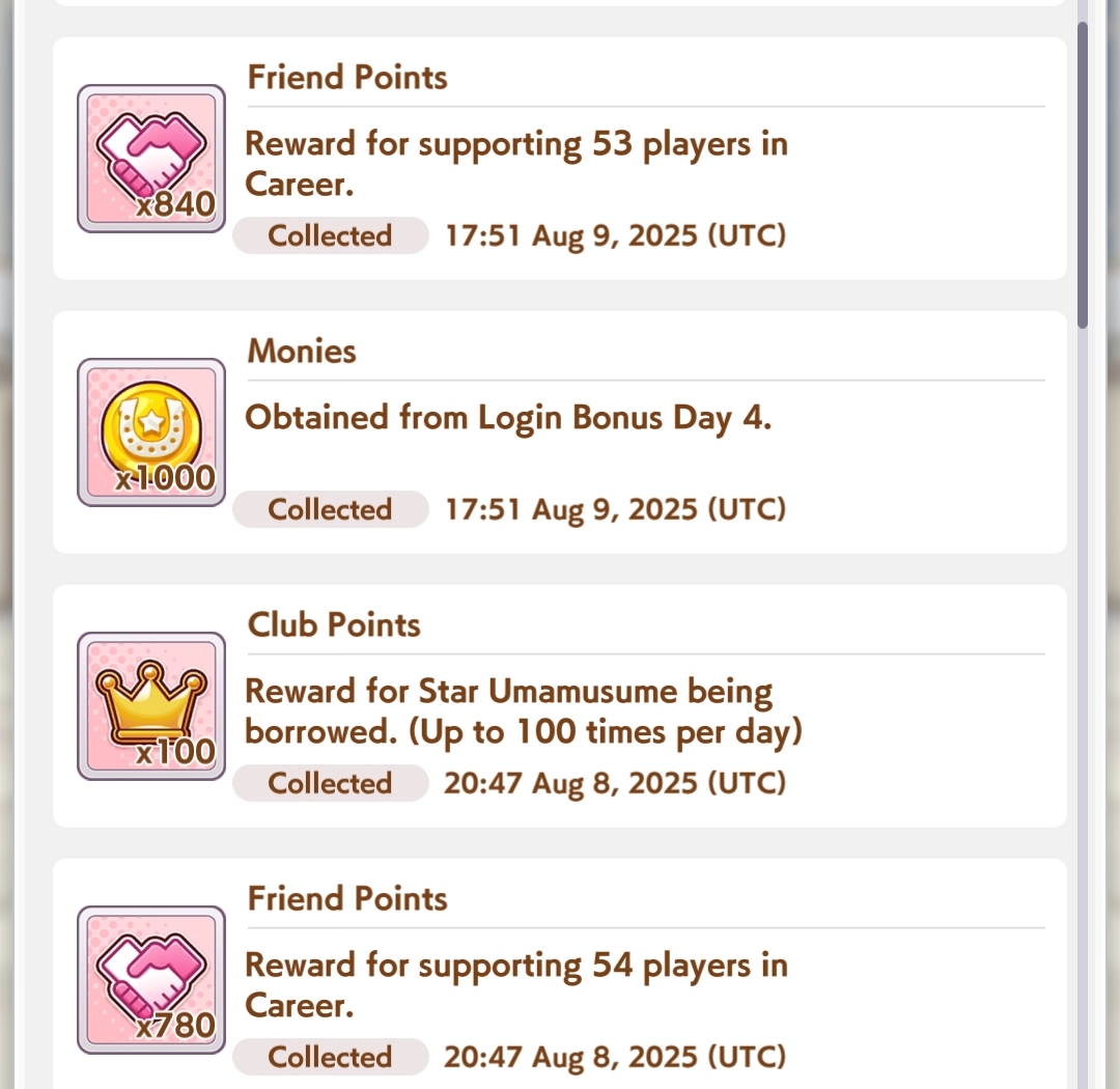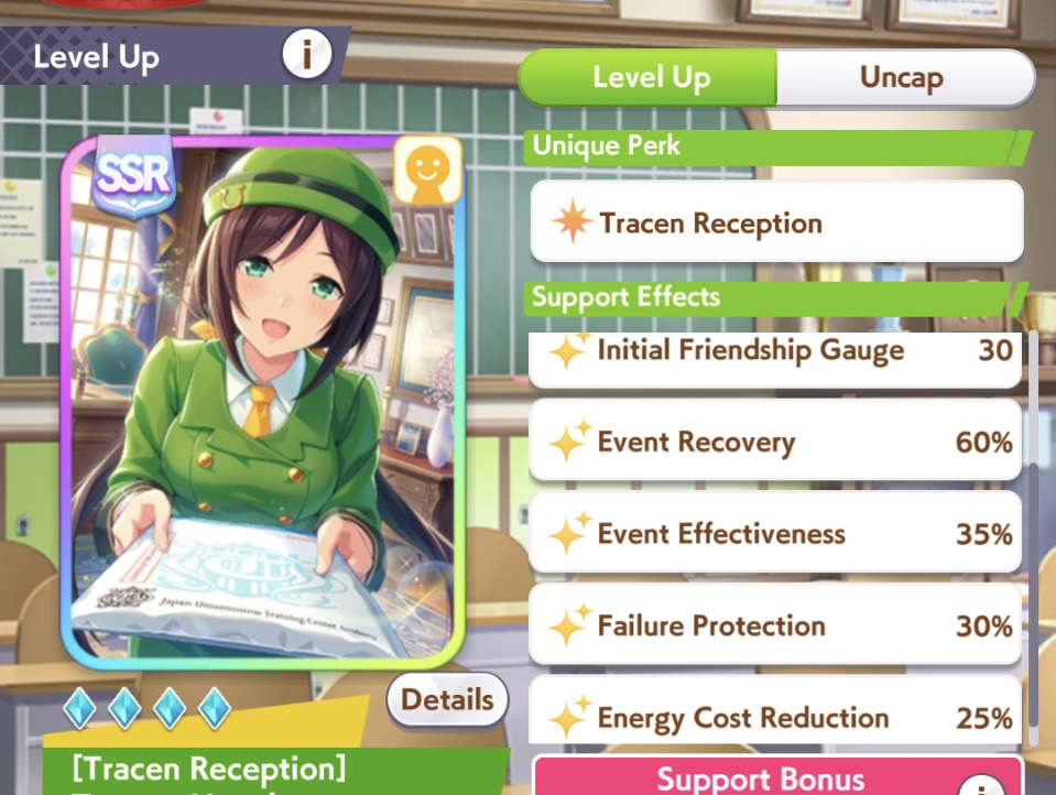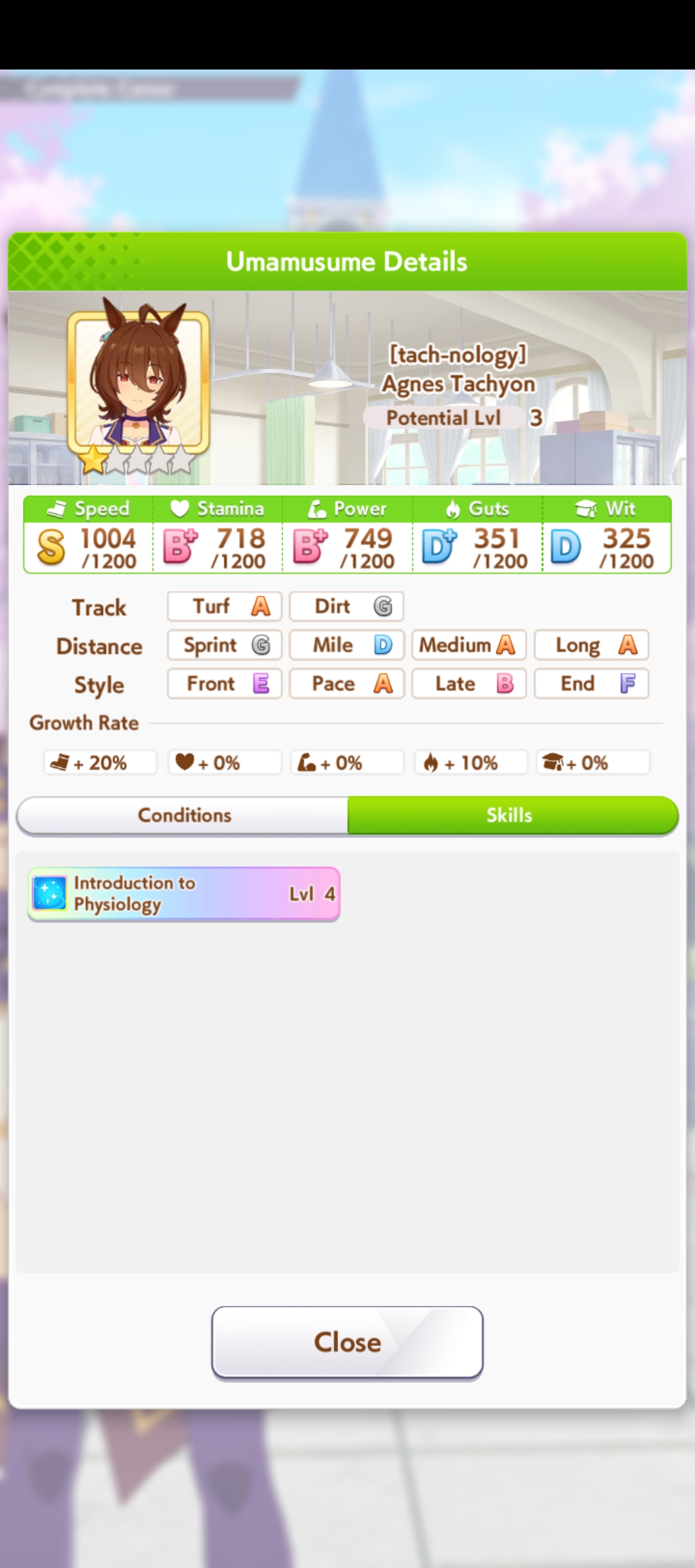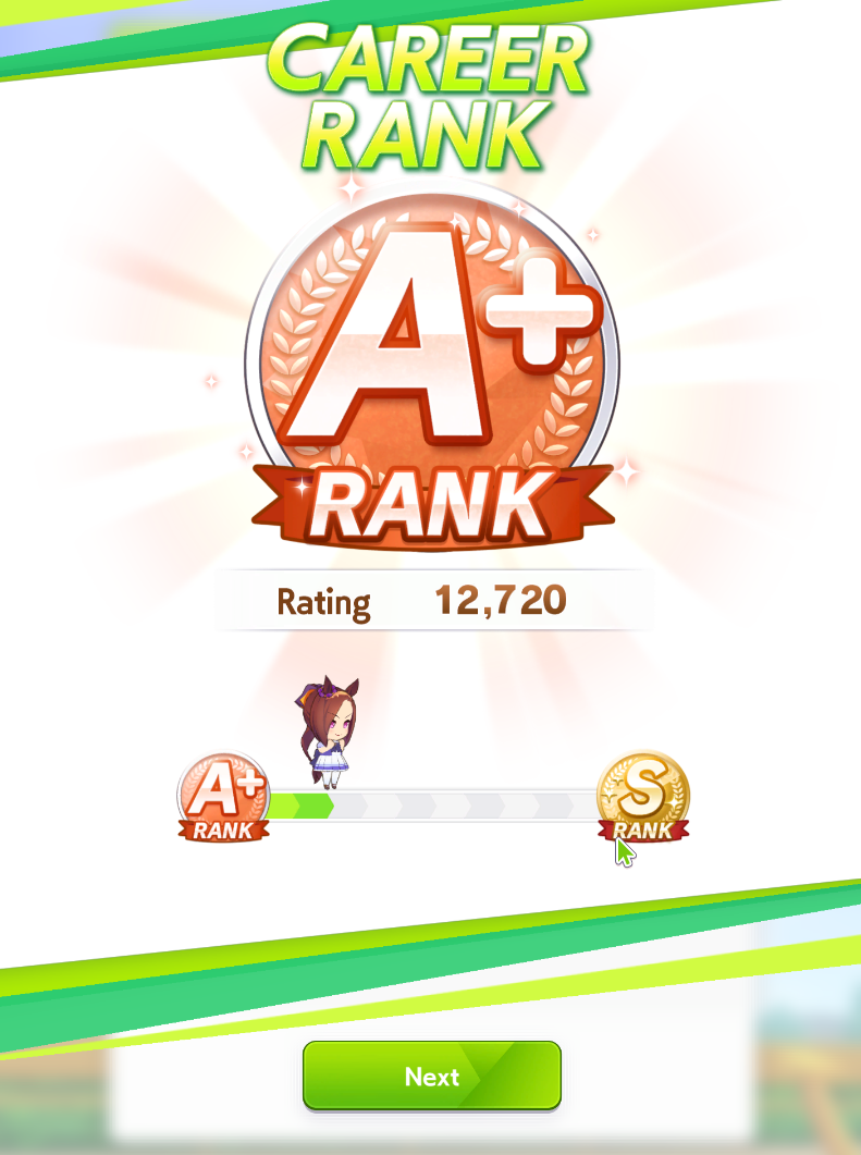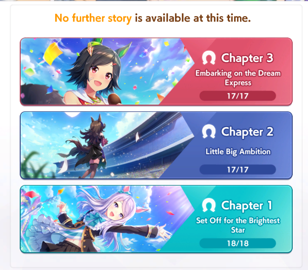 Когда выиграла начальный уровень гонок только с третьего раза, оставалась после уроков в наказание два раза, четыре раза недосыпала, три раза была недовольна сладостями, а 3 карты с золотыми скилами просто не дали свои ивенты Все равно прошла финал