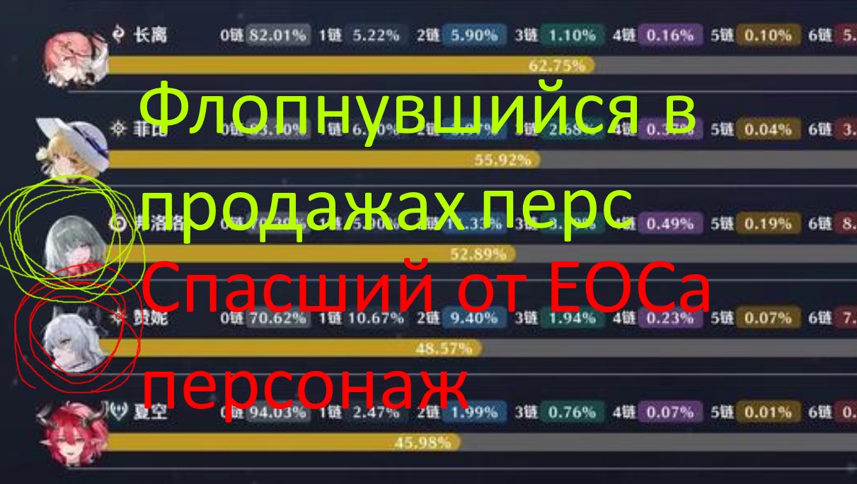 >>5404422 >2 пик Больше не буду верить вот этим табличкам, кстати. Ибо неиронично заявлять, что релизный баннер Роччи собрал больше Фроловой - это какой-то особенный уровень бредятины.