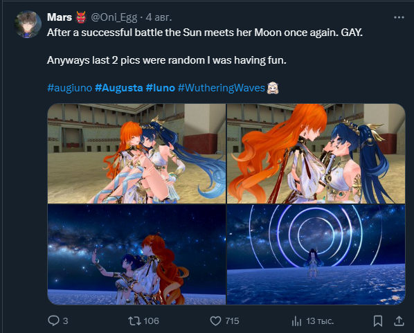 Ру-коммьюнити гач (которое не нормисное, а активное) по своей соевости даст фору любому еврокуку. В любой гача-игре.