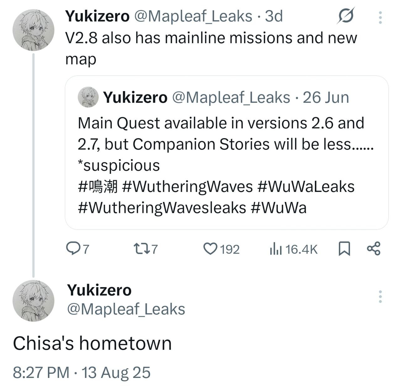 In 2.8, the 4* buling is related to the new damage system in 3.0. Characters after 3.0 will be part of the new damage system. 2.8 will have Chisa’s exclusive Japanese-style miniature garden-themed map. 3.0 will feature an academy. There will be a Fusion Sentinel resonator. 3.4 anniversary collab event with a cyberpunk map, followed by Mengzhou. 4.0 will introduce new federation.