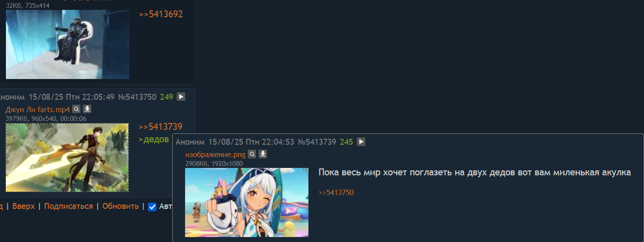 ✦ FAQ и архив треда https://rentry.co/genfaq2chhttps://text.icu/genshinfaq ∙ Скрытие постов со стикерами https://text.icu/gensticker