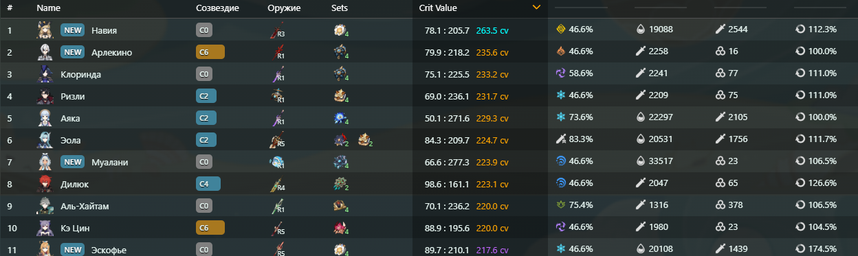 ✦ Показать персонажей картинкой https://akasha.cv/ ∙ https://enka.network/ ∙ Гайды https://t.me/genshin_academy/https://keqingmains.com/