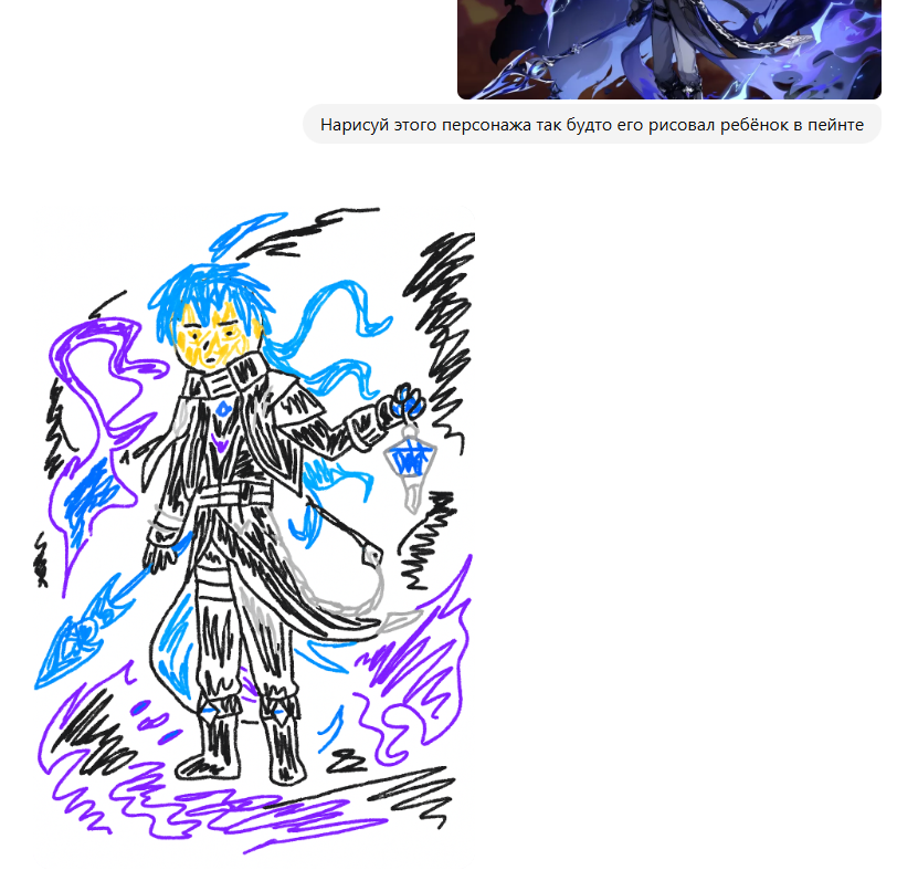 Неиронично, вот бы чемпика с таким дизайном в игру. Вот если будет Ляо делать добренького клона Дотторе чтобы унять малолетних девочек, вот пусть такого нарисует