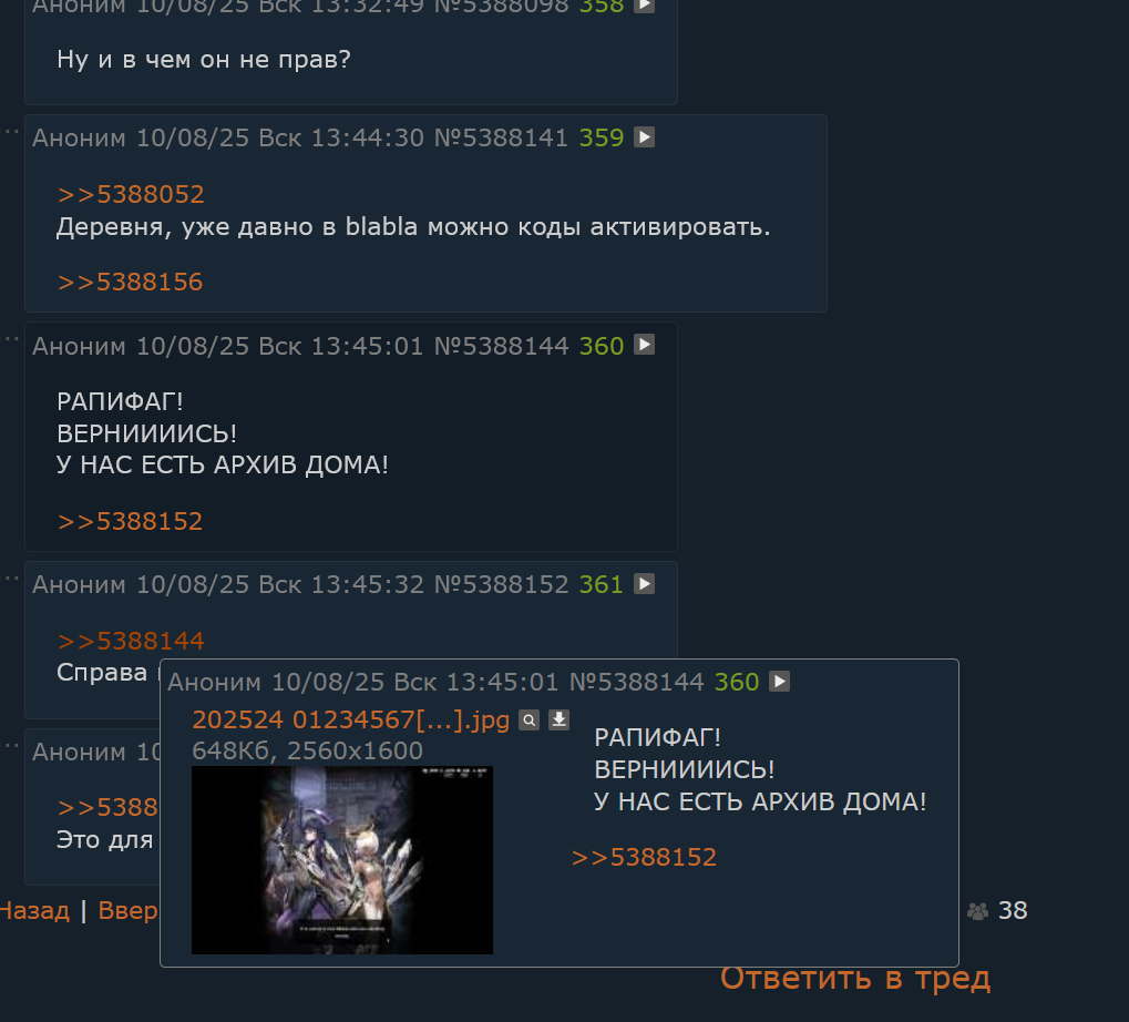 >>5419241 Этот знает >>5419238 Этот не знает >>5419239 Просто если во время пляжного эпизода не дали шанса уединиться с Рапи, то я не знаю, как будут подводить в эвенте со скином. Это же было идеальное время, Ким отлично провернул этот финт с Сакурой в прошлом году. Теперь убирай Сакуру и ставь Рапи. Просто если Ким в очередной раз схалтурит, то над рапифагами снова будут шутить, в тайне, сочувствуя. Если и будет- тогда делайте нормально, чтобы это не было халтурно, с бухты-барахты и не ушло в пустоту. А вообще, сначала выбор фаворитки сделайте, как в других гаремниках. Я, может, хочу сладко распивать чай с Людочкой. Мне ваша Рапипи в хуй не упиралась, пусть берёт кто хочет.