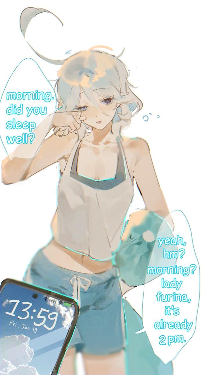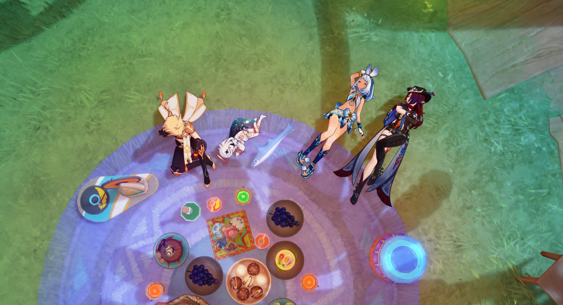 Дошел до метки, ушел на кухню, сделал себе салат из огурцов с помидорами, перекусил, всё это время слушал как паймон с муалани и беннетом о чем-то бормотали не прерываясь на F. Наверно, охуенно быть скриптовичком и не трястись за аккаунт с другими гачами.