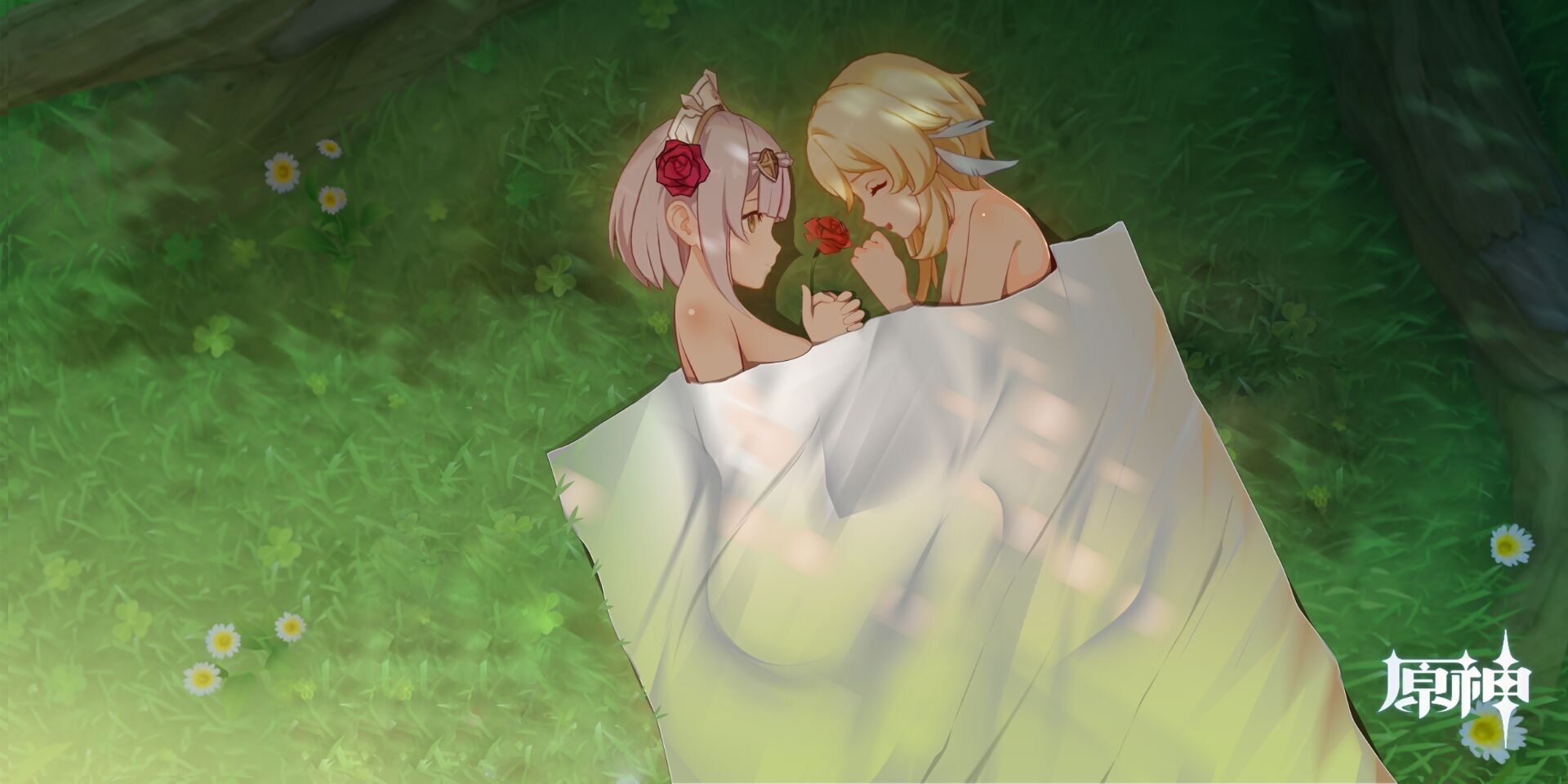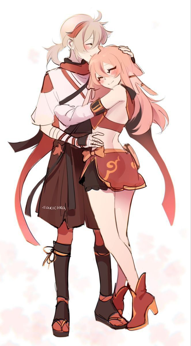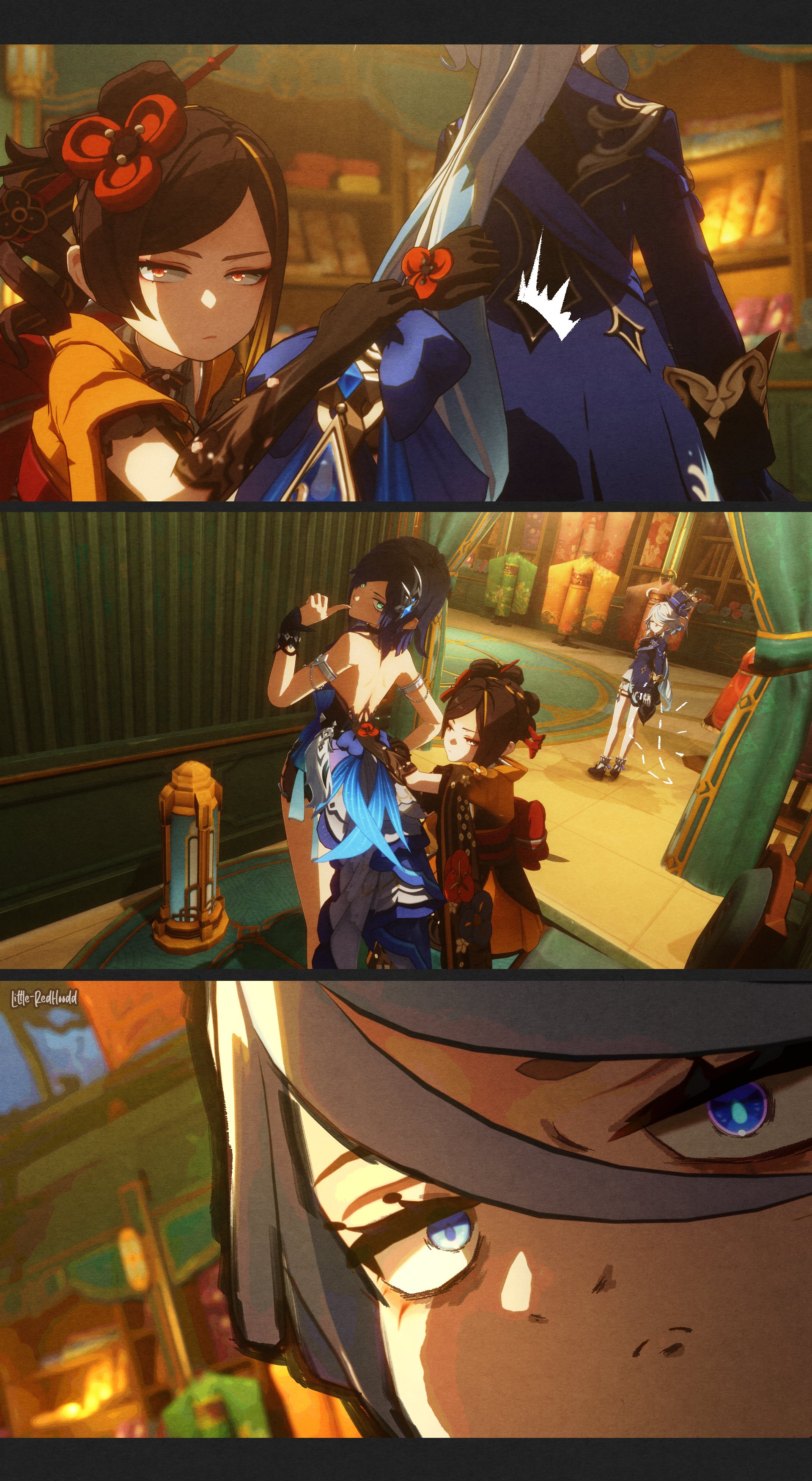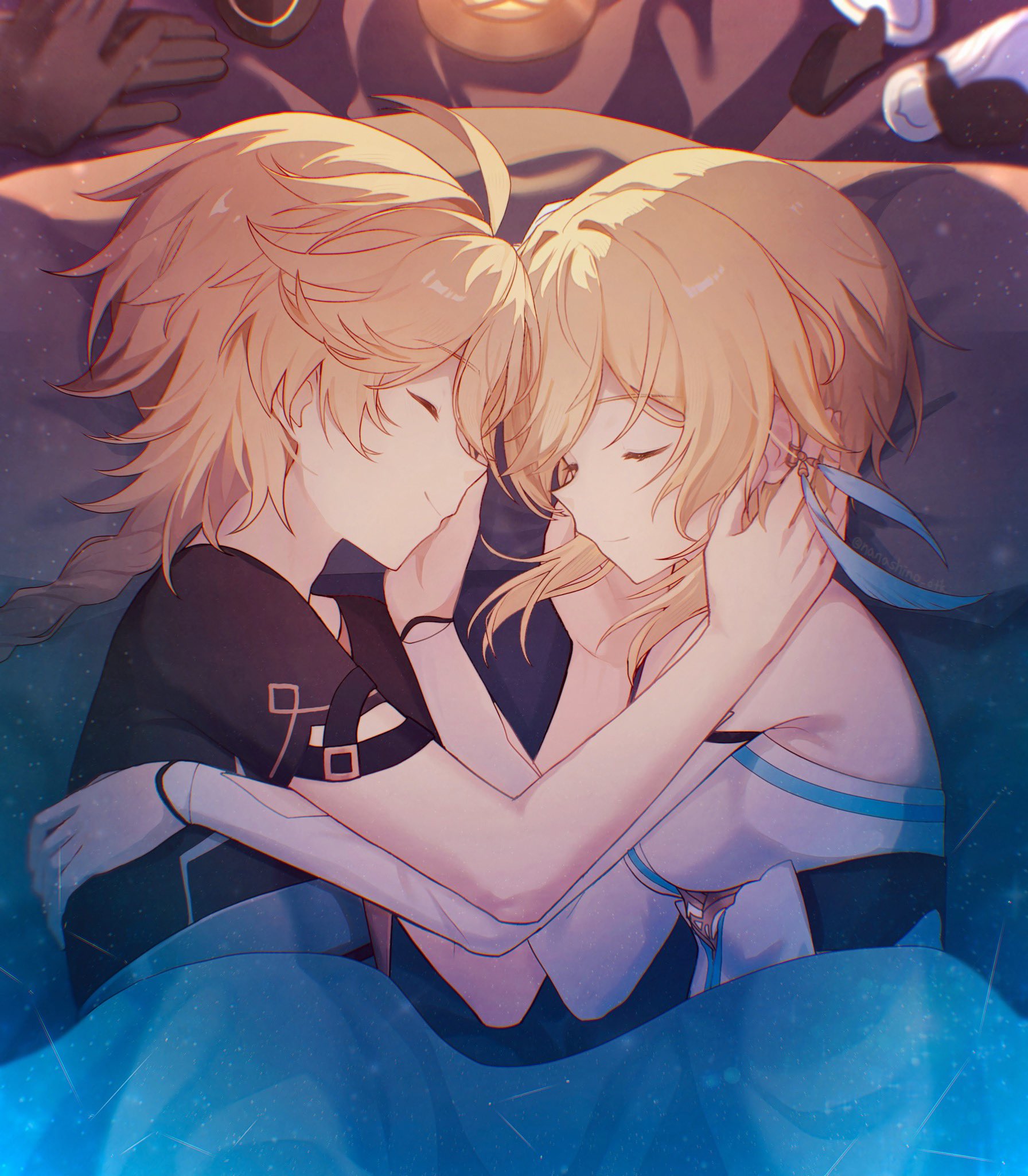 Пейринг, конечно, странный, но он так мило её держит, что аж самому захотелось приобнять какую-нибудь милую девочку за талию и поцеловать в макушку. Как жаль, что у геншинят не бывает девушек...