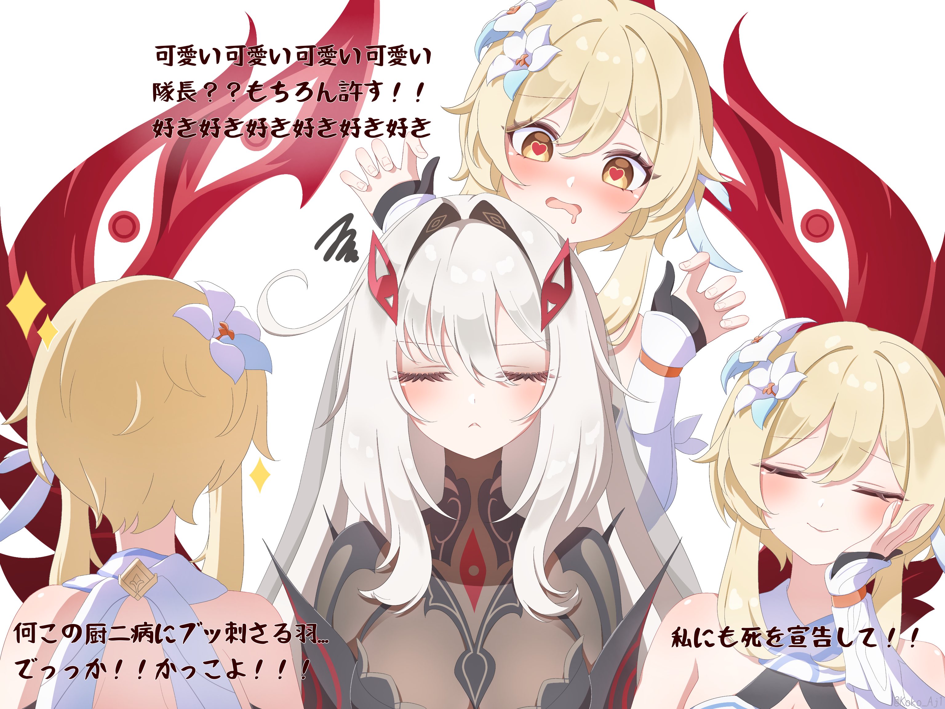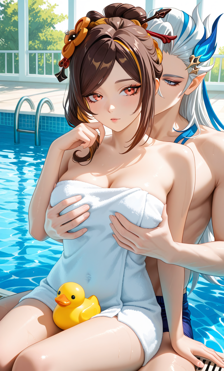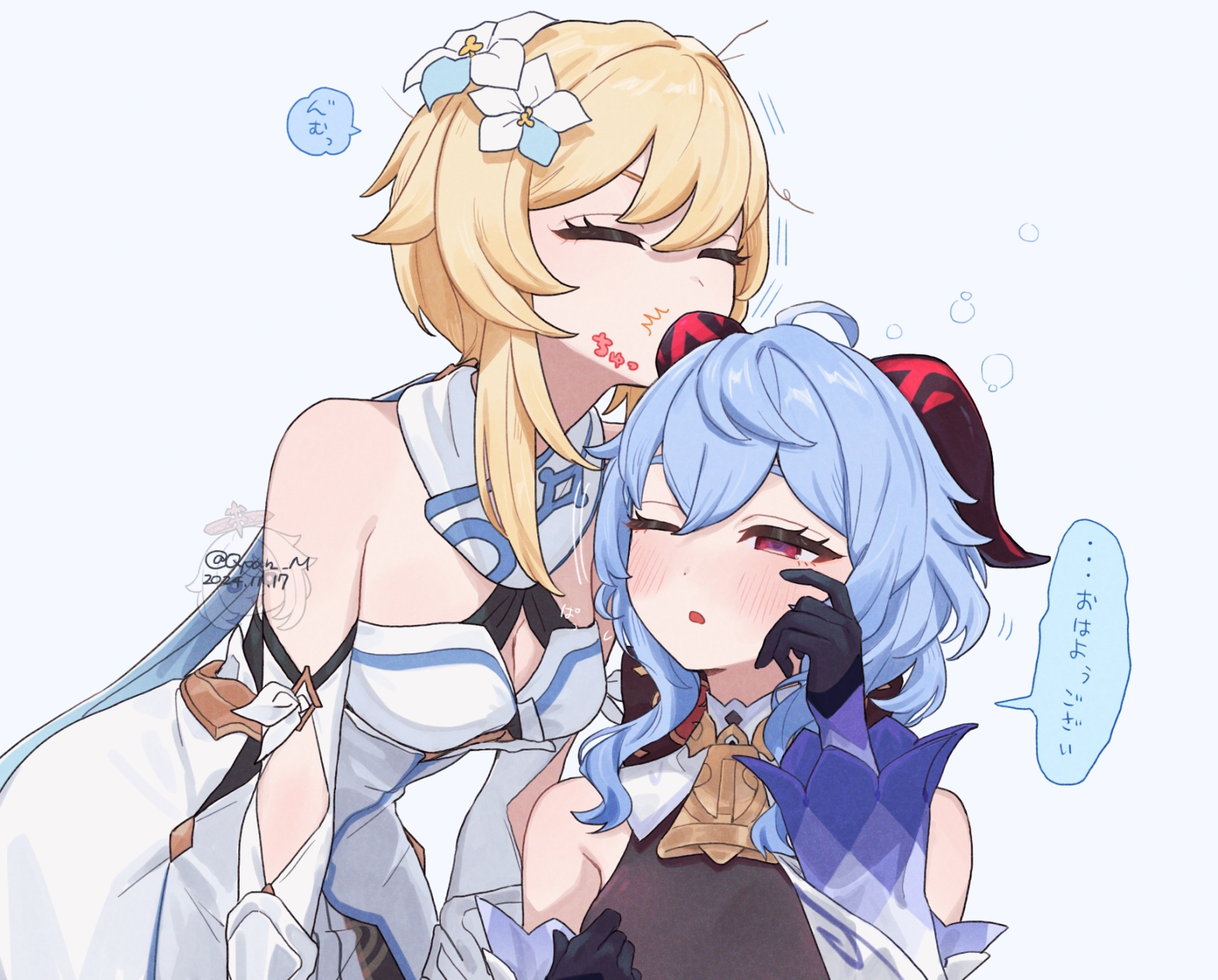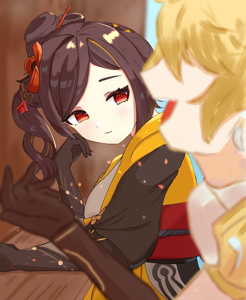 Пейринг, конечно, странный, но он так мило её держит, что аж самому захотелось приобнять какую-нибудь милую девочку за талию и поцеловать в макушку. Как жаль, что у геншинят не бывает девушек...