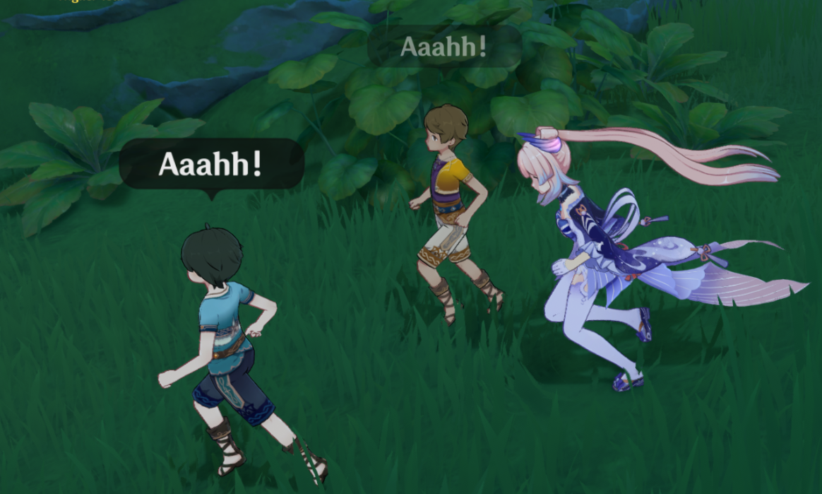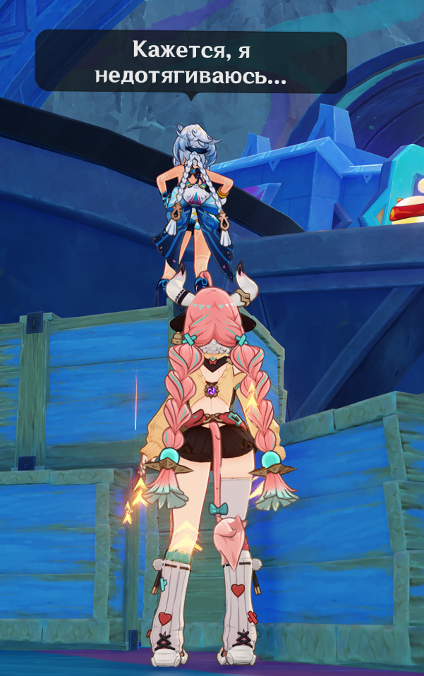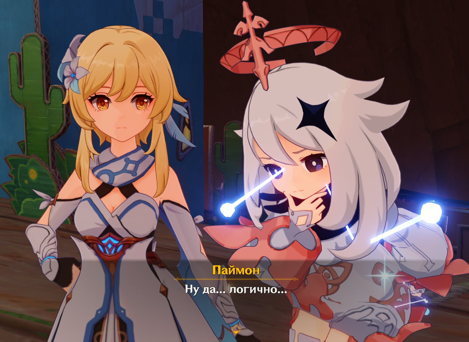Если она намекает на табибиту, то она крайне не права. Даже в Натлане, даже в Разломе, да хоть в Энканомии, табибита никогда не одинок, ибо с ним его лучшая подруга и легендарный проводник по Тейвату — Пеймон!