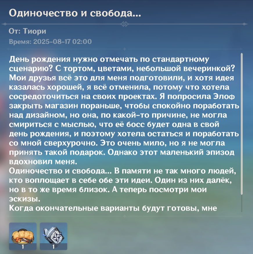 Тиори подарила книжку о свободе, Эмбер подарила книжку о свободе, Кли подарила книжку о свободе - Ляо, эти книжки никому нахуй не впёрлись, дай о борьбе или поэзии, раз уж мондштадтские раздаёшь, сукаблядь.