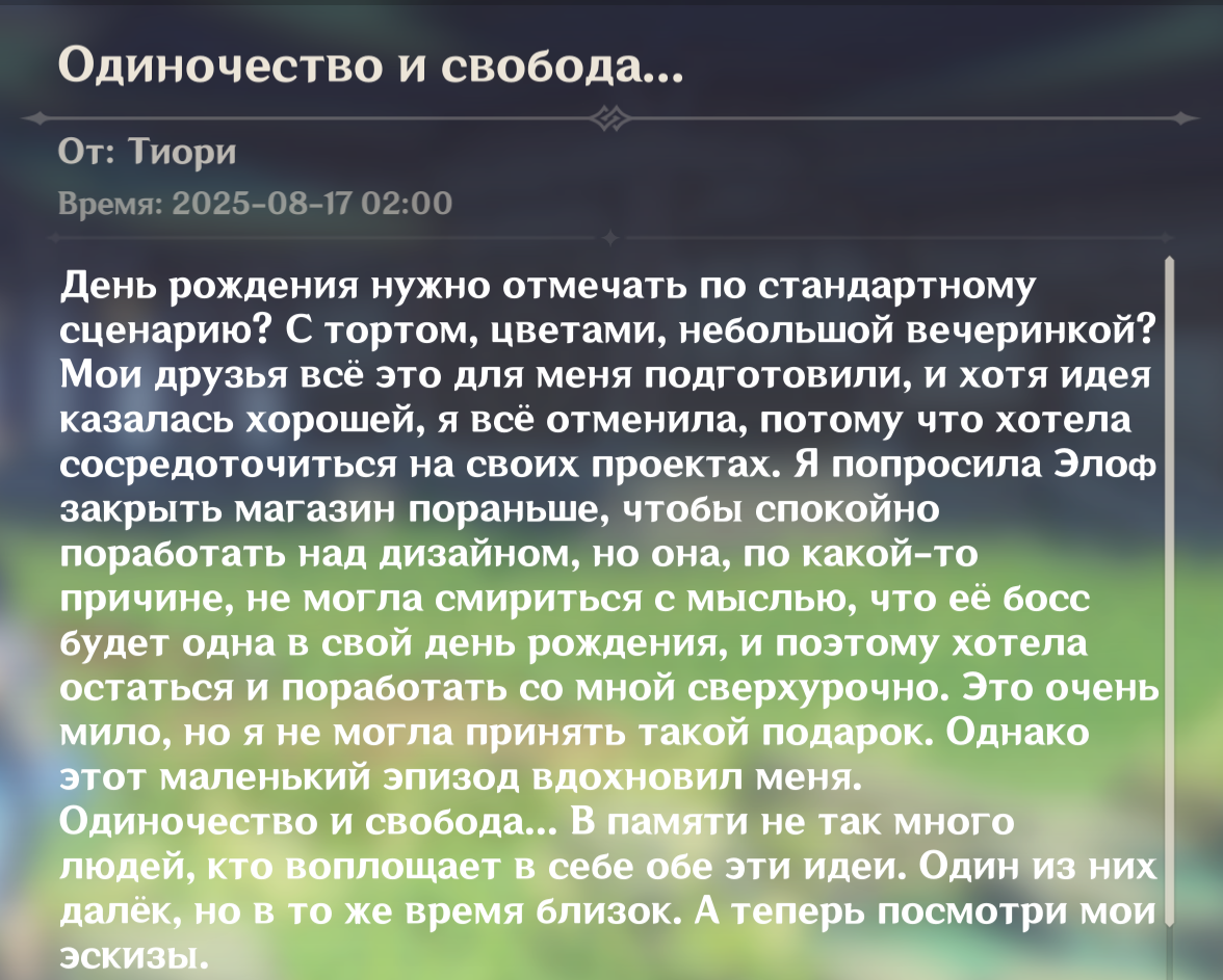 🎉 С днём рождения, Тиори! 🌸 «Этот аромат... так цветёт сакура у меня на родине.... Кажется, я чувствую прилив вдохновения».