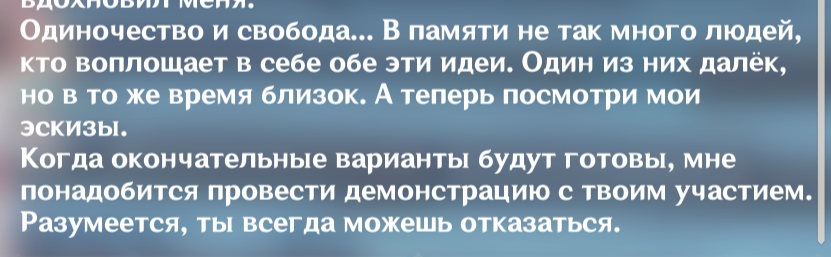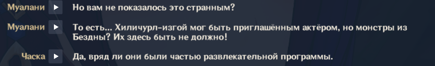 Так, падажжите, аононы... В смысле хиличур-изгой мог быть приглашённым актёром в курорте? То есть они буквально в игре говорят, что хиличурлы МОГУТ быть социально-добрыми по отношению к любым людям, что их даже в актёры можно нанять? То есть, блять, это для всех распространённая инфа, а не только безумная идея Эллы Маск? И это нормально вообще, что раз так, то в таком случае мы убиваем разумных и социально адаптивных существ, способных с сосуществованию?