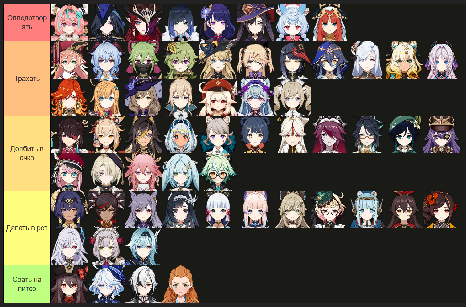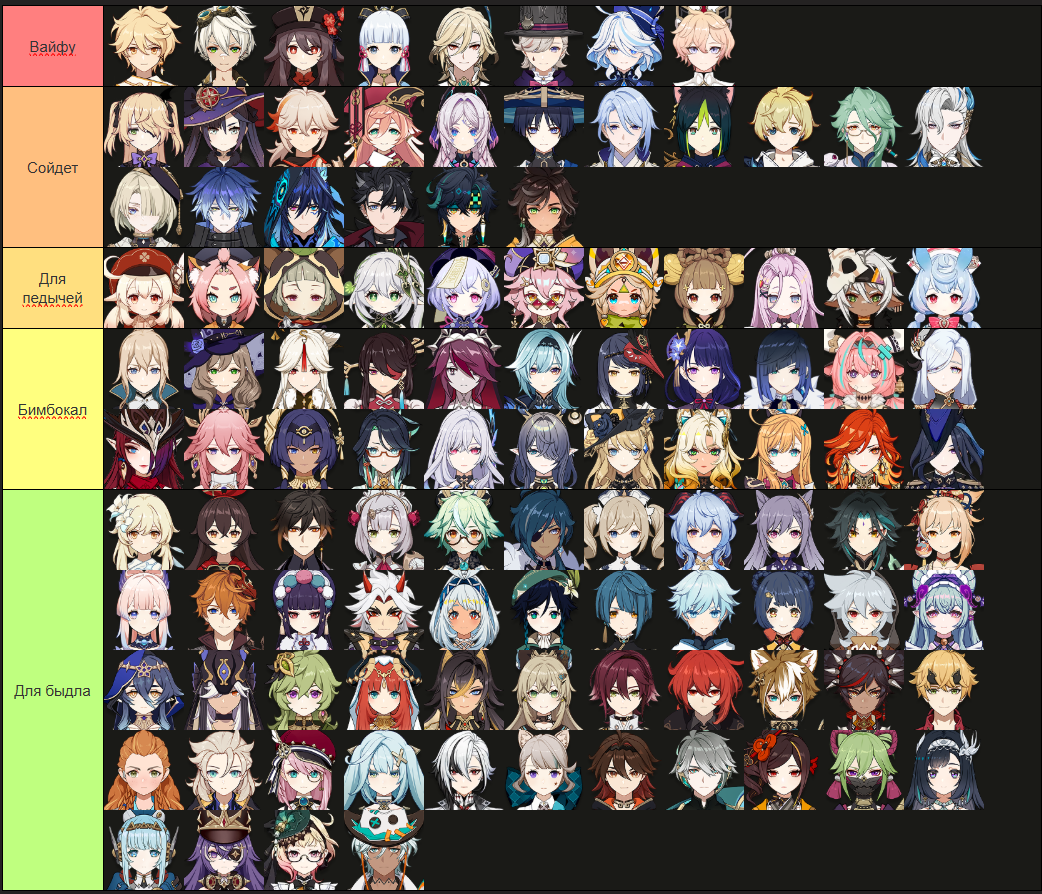 >>5421238 На первых 4 местах самое отвратительное жирушное говно. Буквально 4 самых худших персов хойоверса, которые сделаны фемками, и мейнят их такие же паймоны и траноиды.