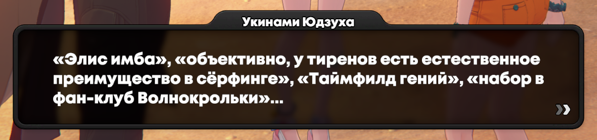 Во 2) вторых, я понял что Юдзуха это по сути Юкари Такинами из Персонки 3 Р по одежде, после чего я оценил отсылку, теперь даже можно и выкрутить. А без Персоны Зюзи вообще бы не было.