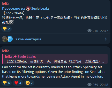 [ZZZ 2.2Beta] I would like to add that the current recommended equipment profession of Dawn Shenghua (another driver disk for 2.2) is strong attack⚔️ Can confirm the set is currently marked as an Attack Specialty set based on its Filtering options. Given the prior findings on Seed also, that leans more towards her being an Attack Agent in my opinion. Сид атакер короче тоже.