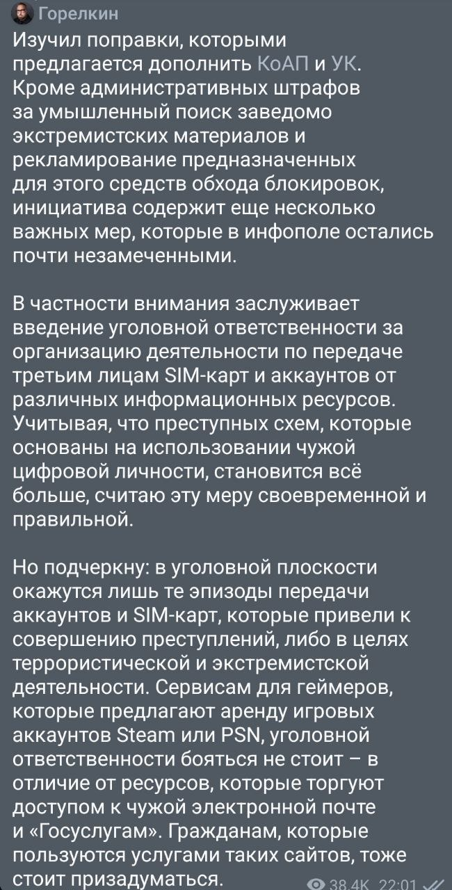 >>5254895 Если сам аккаунт используешь для преступлений. Например если ты продал акк геншина, а чел с него домогался до несовершеннолетних в переписке, то готовь жопу.