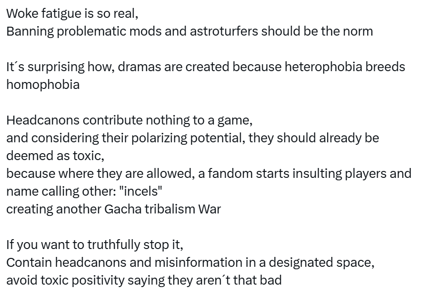 >>5428983 Есть общие нарративы. Типа Дорома, улучшение эхо-системы, перевода на русский язык и негативное отношение к тенденции жесткого закрепления одного персонажа к другому. От этого и отталкиваемся. Плюсом противодействие цензуре и прочему.