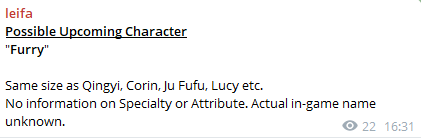 My speculation is that this is some version of Zhao given she is 1. A furry 2. Short af, matching short female However, this doesn't match the other info I have on Zhao, so it is most likely early/placeholder...