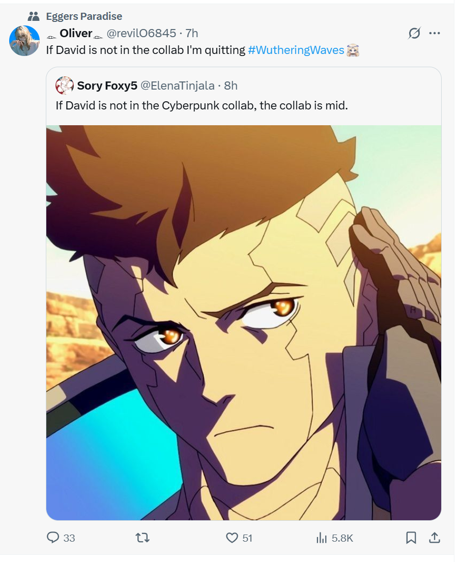 Вот уже полтора года вуве, и я заметил очень приятную тенденцию, каждый новый персонаж (кроме падисаров конечно же) крайне сильно форсятся кор комунити и даже через время после окончания своего банера остаются на плаву в плане упоминаний и мемов и другого фан контента, ну то есть они действительно достаточно хороши и задизайнены что бы про них не забывали и клепали с ними контент. Единственное исключение когда ты видишь перса и такой "а, я уже и забыл что такой перс есть в игре" это наверное Джеджи и Инлин, с ними ни артов ни мемасов особо не вижу.