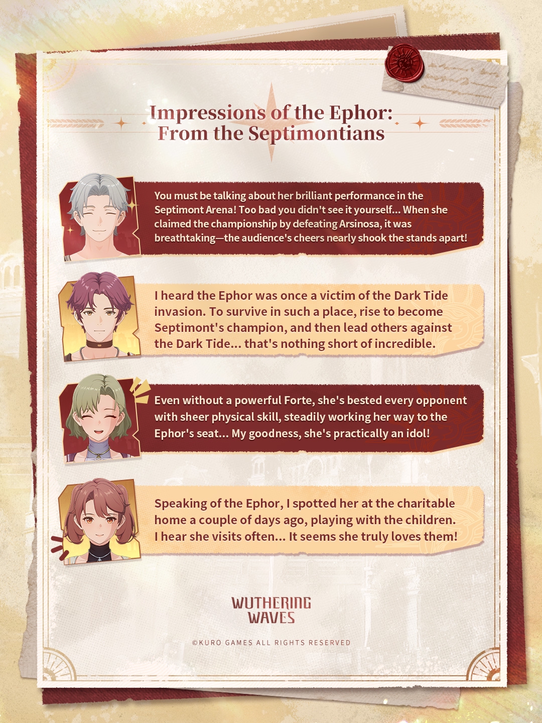 Юно ожидает смерть в ходе сюжетной линии 2.6, Картефия погибнет в ходе отражения Третьего Темного Прилива, а Ринасцита окажется на грани уничтожения. Также подтверждается, что следующий Сентинель - лисичка. Вероятно, это Xin (Сердце), которая упоминалась в лунном ивенте 1.2.