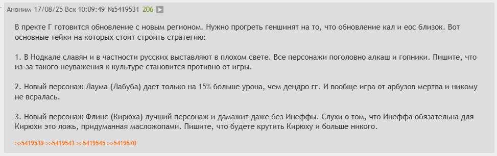 ✦ FAQ и архив треда https://rentry.co/genfaq2chhttps://text.icu/genshinfaq ∙ Скрытие постов со стикерами https://text.icu/gensticker