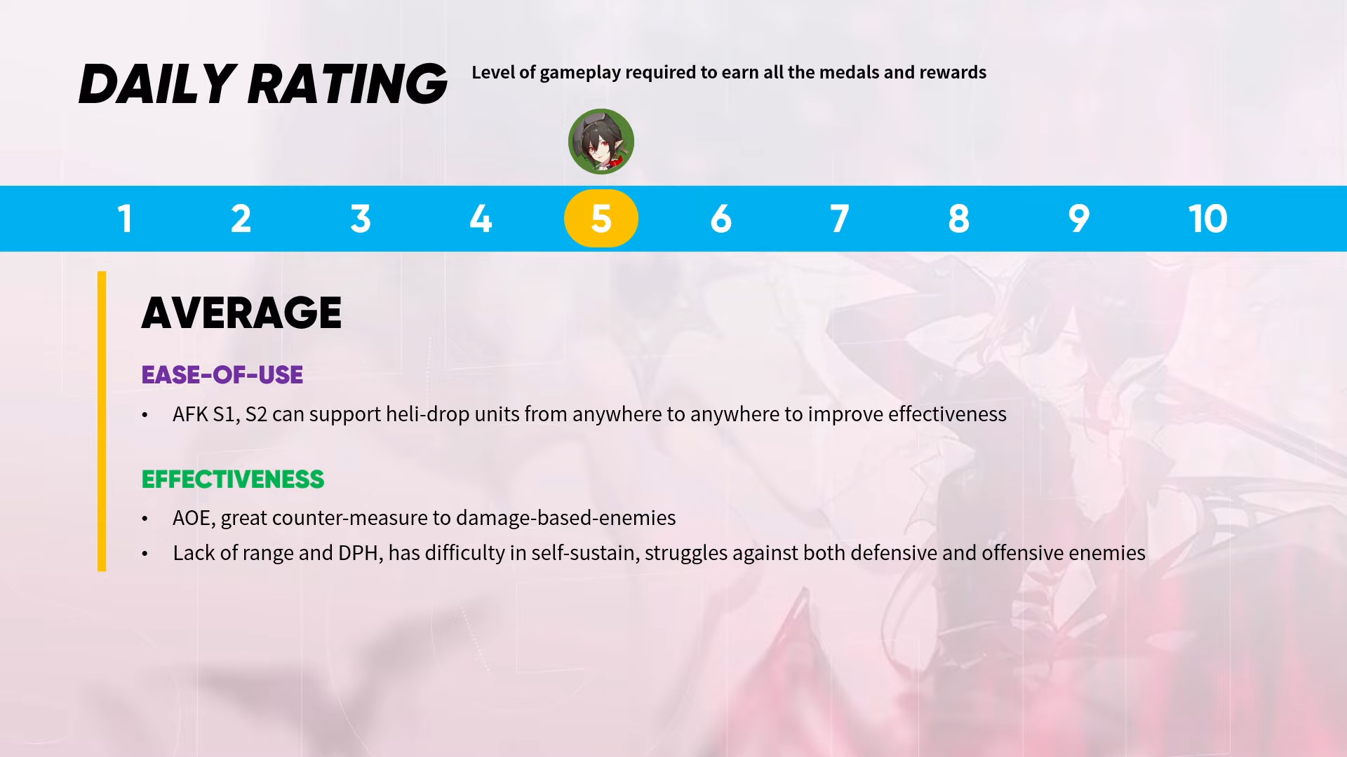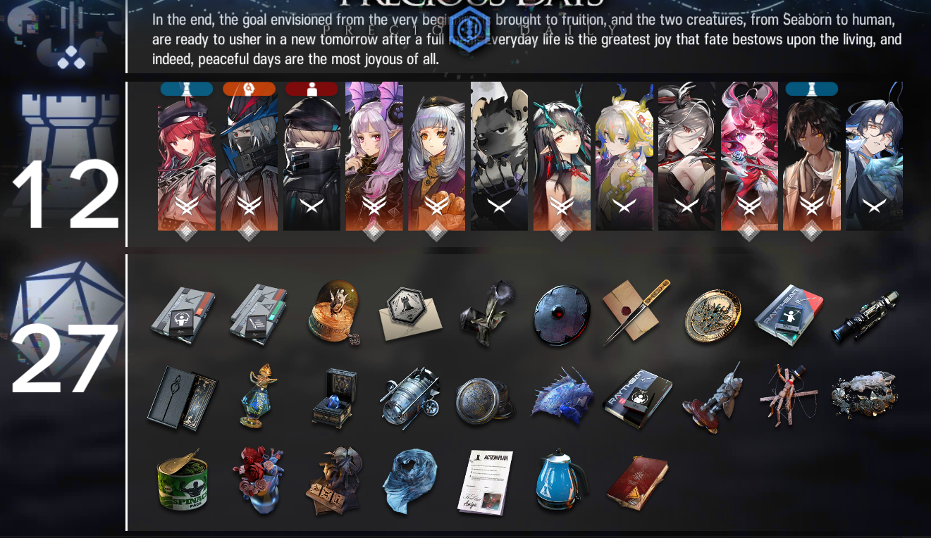 Кроме того, с 7 августа до 21 августа, 13:59 по Московскому времени, проводится ивент на накопление очков, дающиеся за выполнение ежедневных или ограниченных по времени заданий. Главной наградой за этот ивент станет ваучер на мгновенную прокачку 5* оперативника. Все избыточные очки выше 4500 будут конвертированы в LMD по курсу 1 к 20 по окончанию ивента