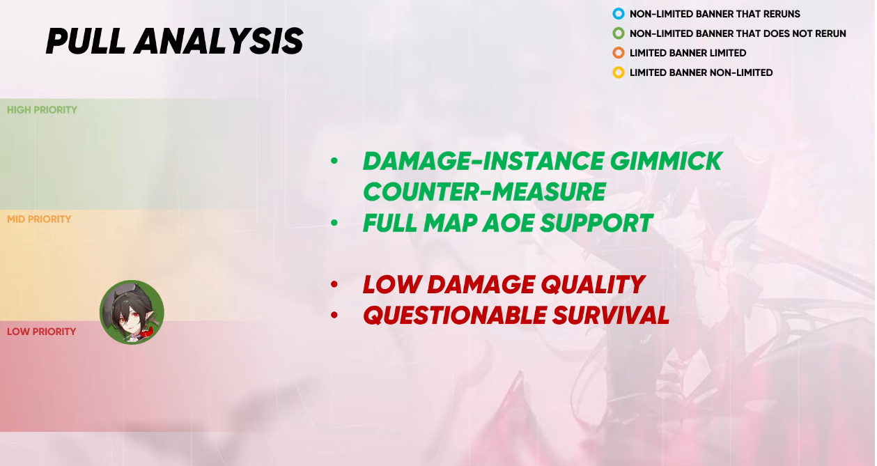 >>5423718 >не лучше ли вишню за 300 взять в баннере эксички? Ш довольно спорная на самом деле покупка. Эксия с Лемуен получше будут в плане нанесения урона. Врятли кто-то останется в таком количестве после них, что гигантское аое таракана будет нужно - а в соло цель она не самый лучший вариант и сейчас, если враг толстый. Да и делают дамаг резисты/оверброню постоянно, чтобы 6 пулек были как слону дробина. Скорее Артурию или Техас лучше купить - первая против как-раз оверброни+резистов с низким хп типа как шаровидные здоровяки из ивента Ю хорошо работает. А Техас фаст-редеплой с дамагом.