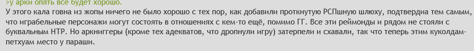 >>5427216 нормискоту нравятся драмы и где всех убивают, стокгольмский синдром настоящие аутисты не читают лор, и играют только в башенки и эксель таблички