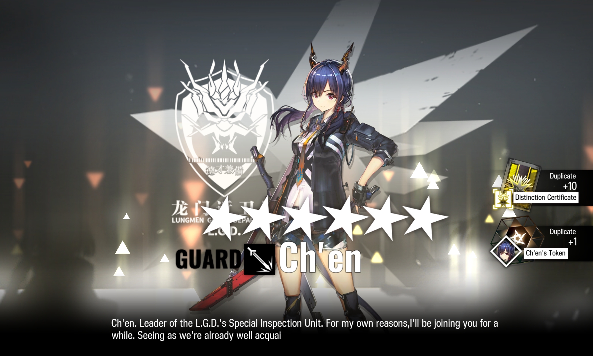 Особый баннер Joint Operation (С 14 августа по 28 августа): 6★: Zuo Le, Ines, Typhon, Nymph 5★: Cantabile, Firewhistle, Bobbing, Lucilia, Sand Reckoner, Mulberry Особенность баннера в том, что в пуле персонажей 6-5 звёзд будут появляться ТОЛЬКО персонажи из этого списка.